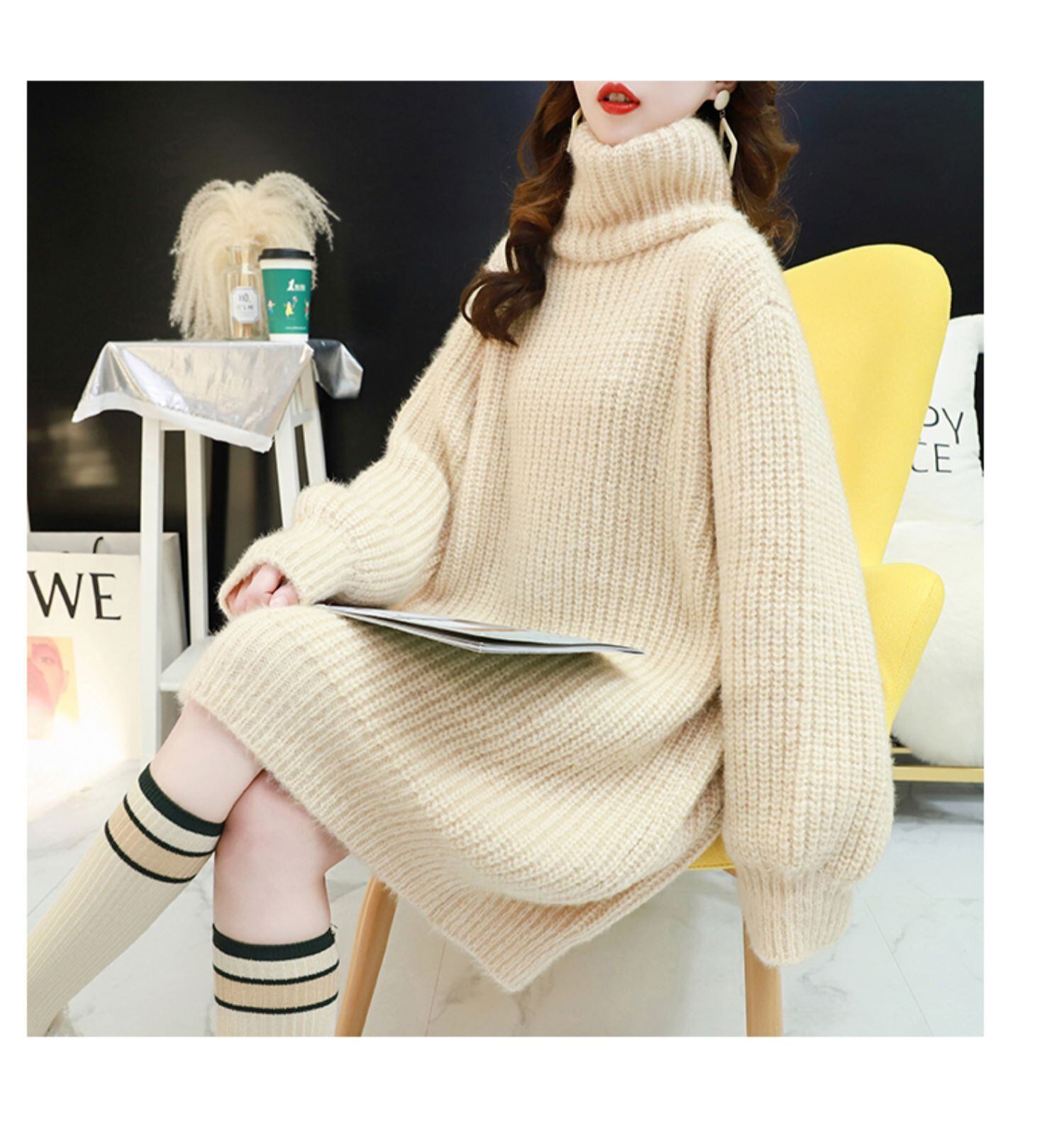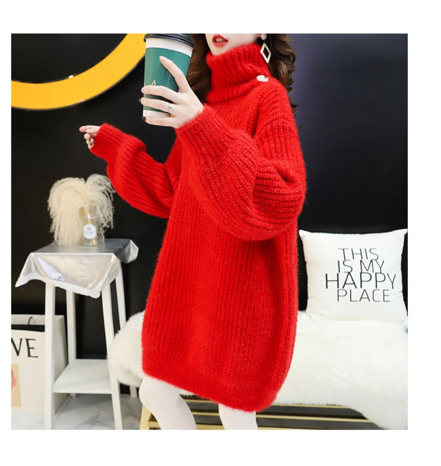 タートルネックの赤いセーターの女性の冬の肥厚秋と冬のアウターウェアは、長いセクションの長袖プルオーバーセーターの女性で緩くて怠惰な風を着用します ロング レッド オータム 秋物 ウィンター 冬物 yingd55555801200