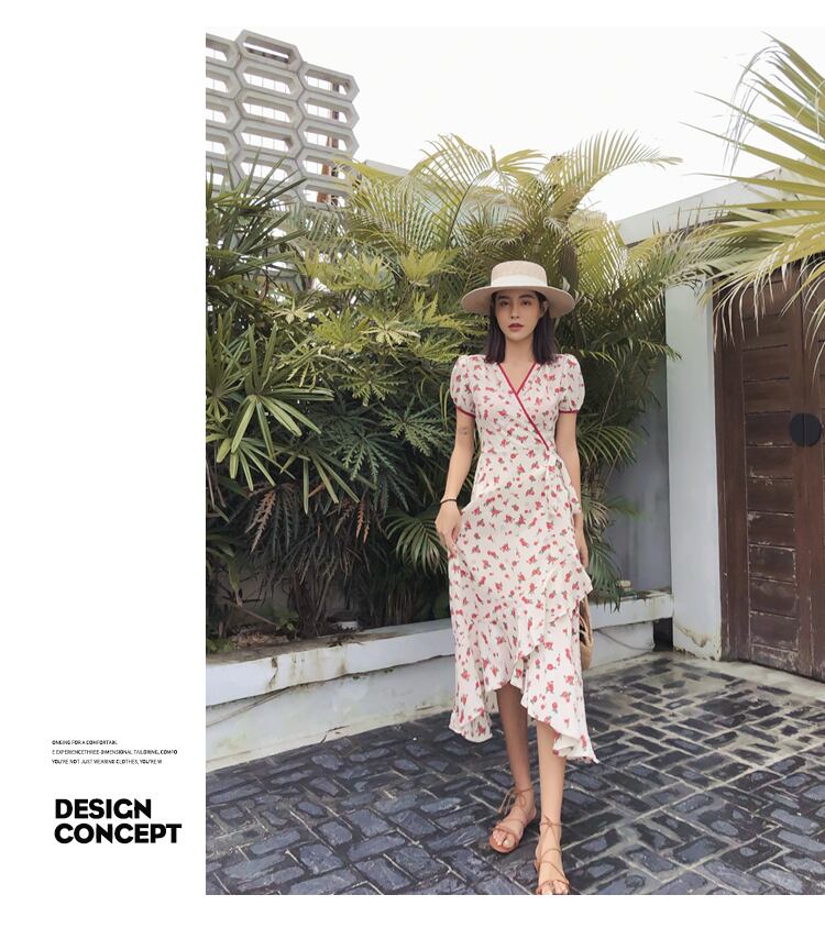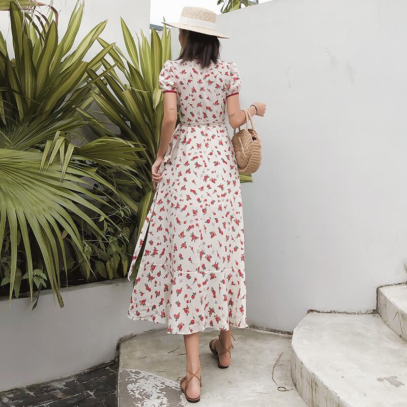 2020年夏の新しいフランスのニッチな優しい風の花柄のドレス女性の気質ウエストは薄いレトロなベルフラワースカートでした サマー 夏物 フラワーデザイン yingd75997203657