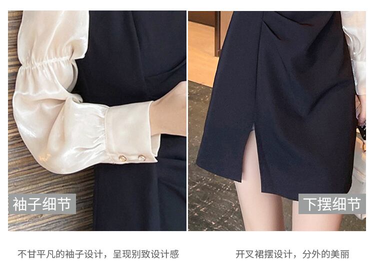 2021年秋新しいフレンチレトロシックなデザインセンスヘップバーンスタイルスクエアネックパフスリーブスプリットドレス女性 オータム 秋物 スクウェア yingd3477467176