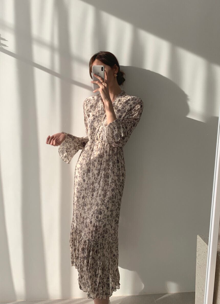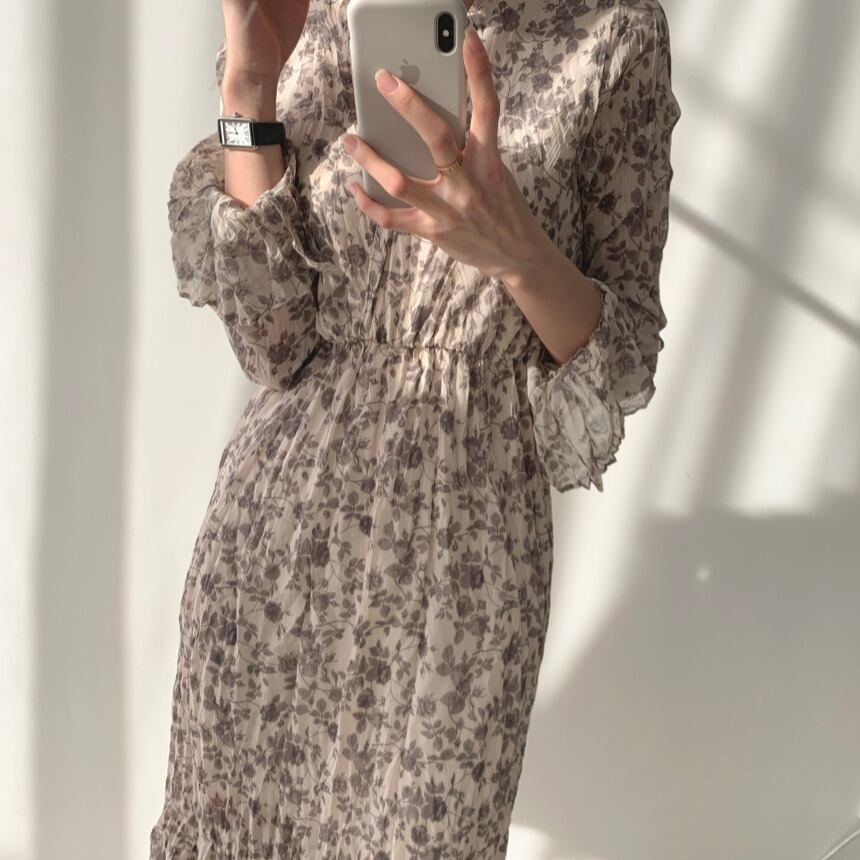 フレンチヴィンテージオーバーザニーミドル丈フローラルドレス 花柄 ビンテージ yingd756660226