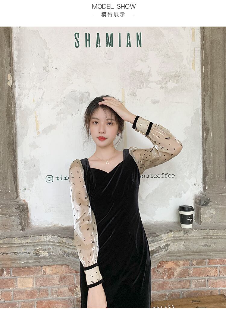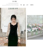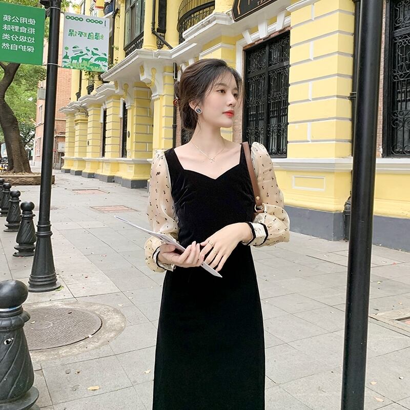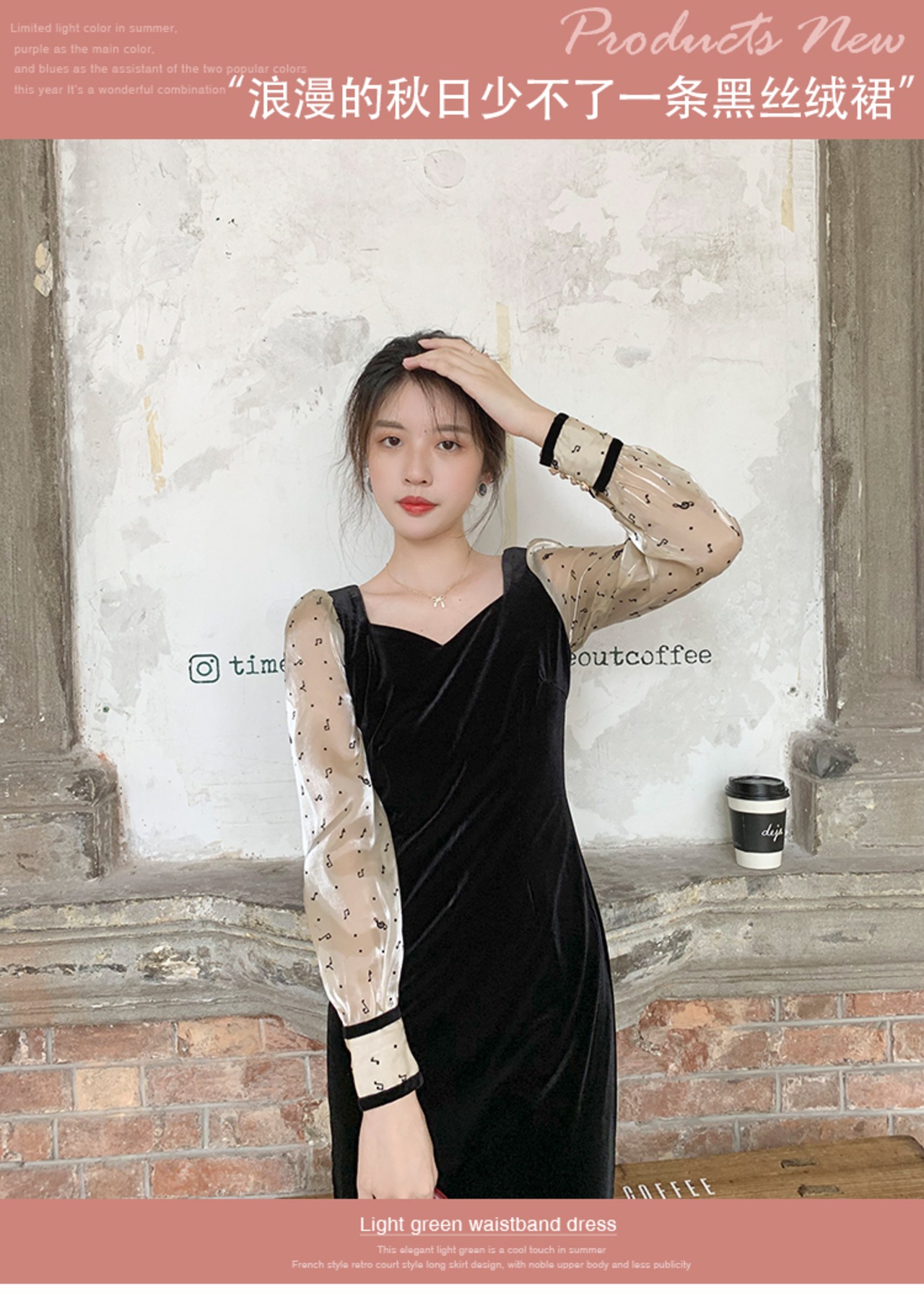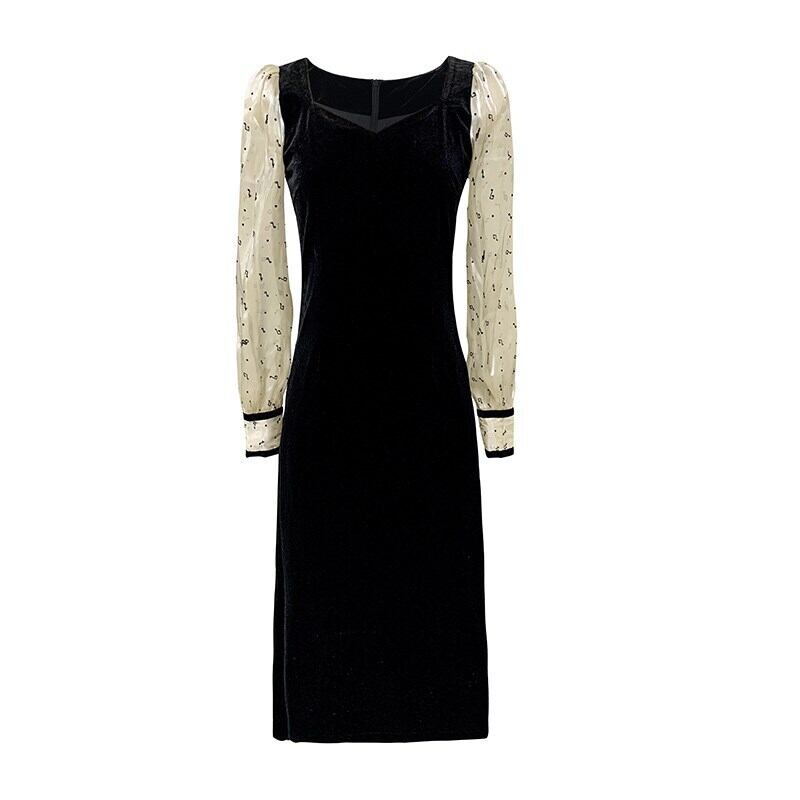 フランスのレトロなヘップバーンスタイルのリトルブラックドレスのウエストは細く、軽い高級感のあるセレブスプリットベルベットドレス女性の秋 オータム 秋物 yingd17080261158