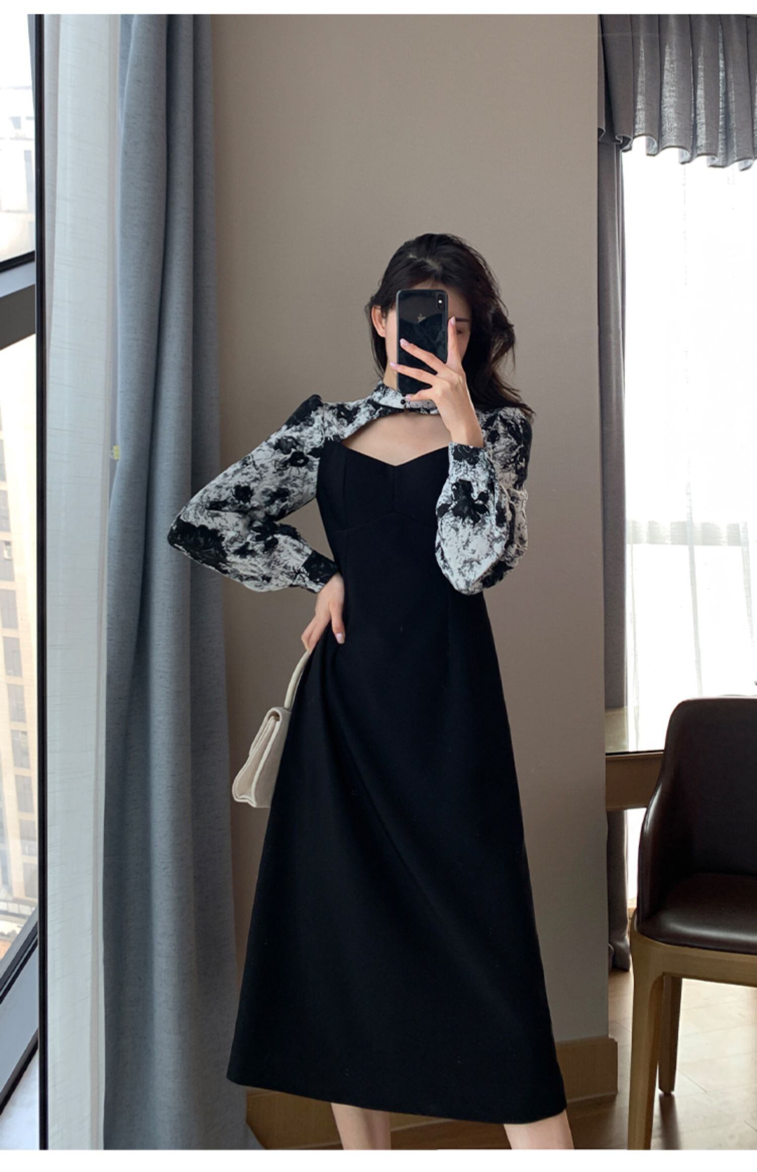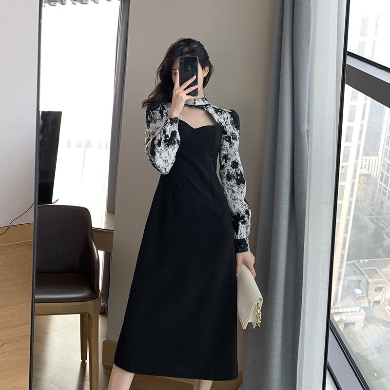 フランスのレトロなデザインのニッチな膝上ロングスカート、ウエスト、軽い成熟した風、高精細で軽い豪華な長袖のドレス、女性の秋の服 オータム 秋物 yingd22894088833