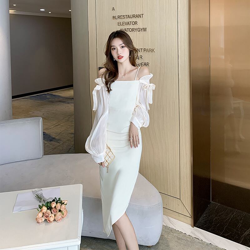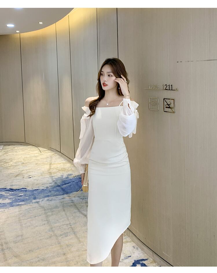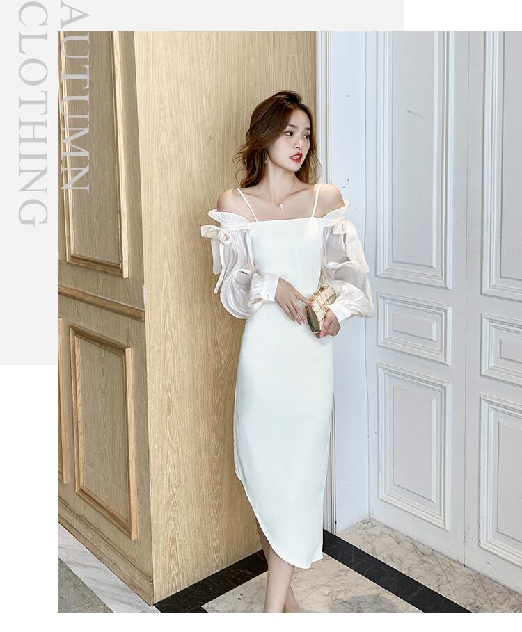 2021年初秋の新しい女性の気質の女神ファン高い高級感とセクシーなオフショルダーステッチワンショルダードレス オータム 秋物 yingd58393984253