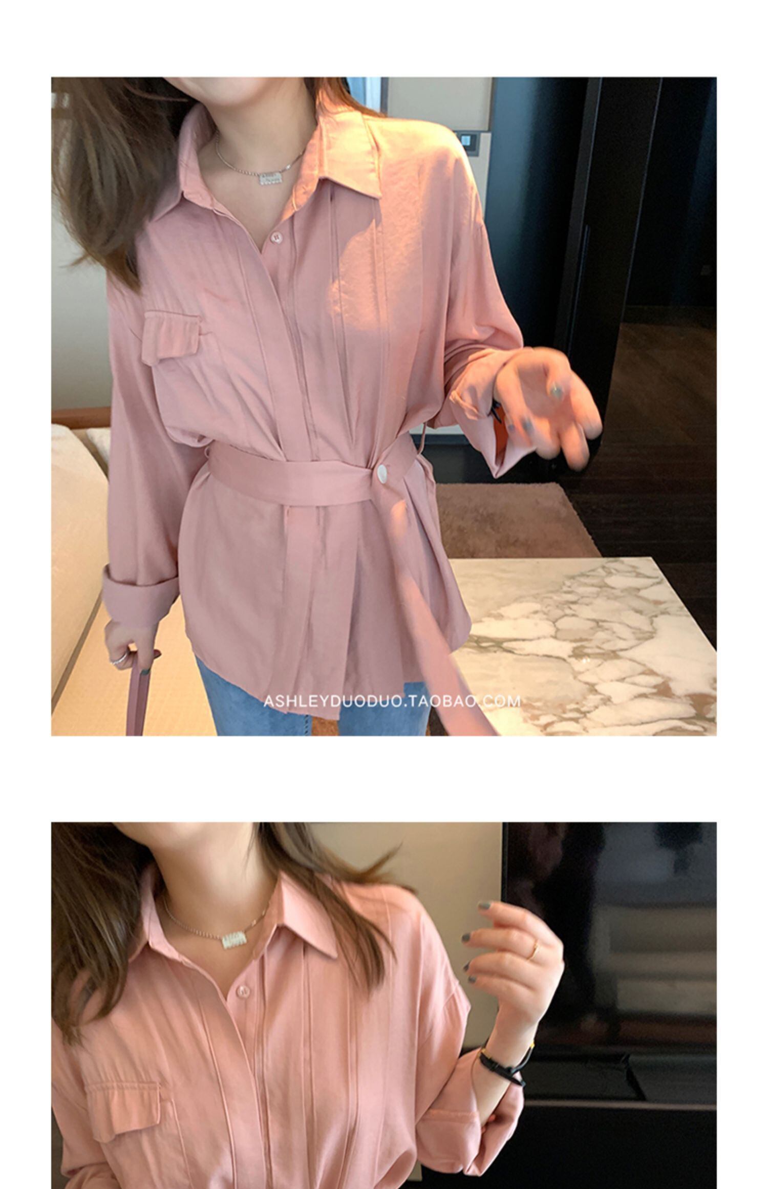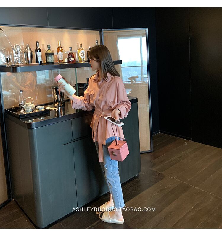 2020年の新しいレトロな香港スタイルの長袖シャツブラウスデザインのニッチなウエストのセンス、薄いウエスタンスタイルのシャツ ロング yingd49119235829