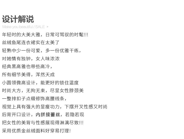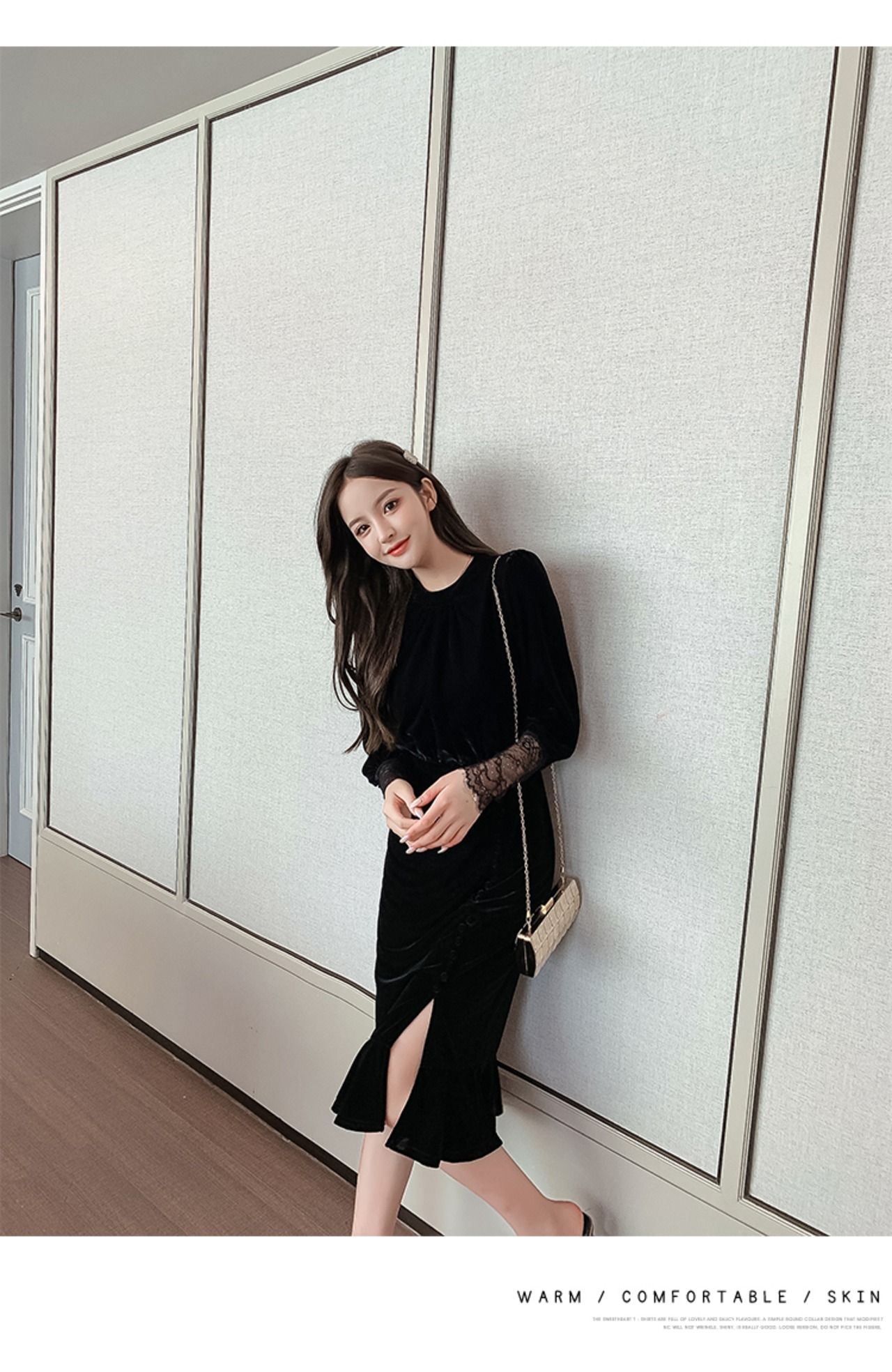フランスのレトロなウエスト、細い気質、セクシーで注意深い機械、軽い調理された風、スプリットフィッシュテールベルベットドレス女性の秋と冬 オータム 秋物 ウィンター 冬物 yingd85706660872