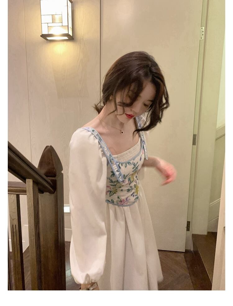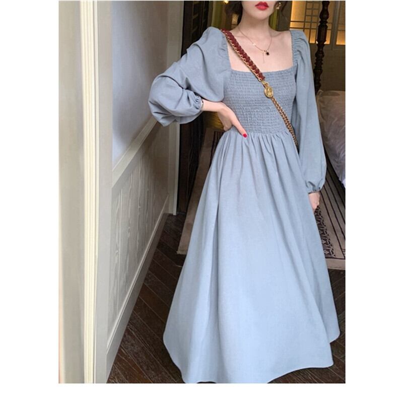 2021年秋新しいフレンチスタイルのニッチな膝上ロングスカートシックで贅沢なライトラグジュアリー長袖スクエアネックドレスの女性 オータム 秋物 スクウェア yingd63287436378
