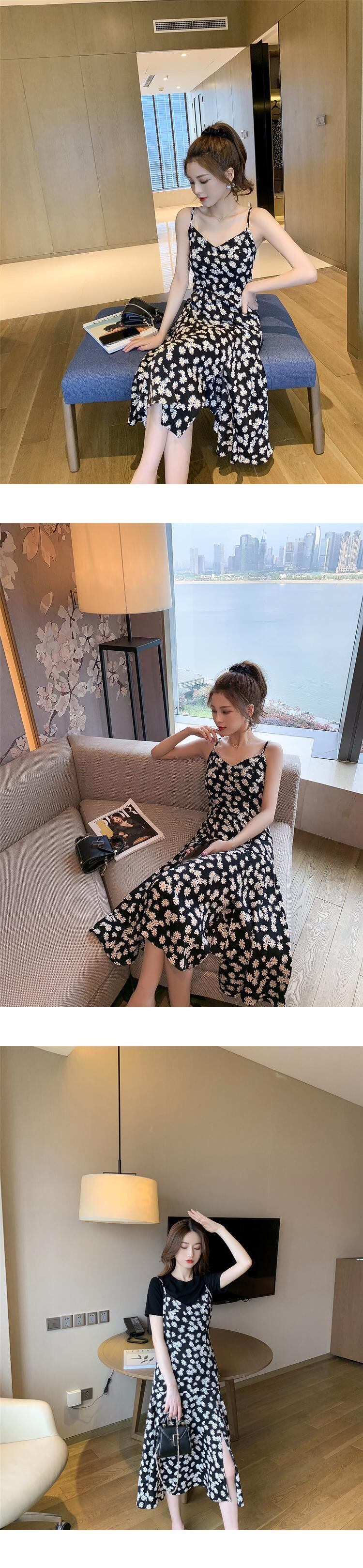 冷ややかなレトロなスリングスカート女性2020新しいフランスのニッチベルフラワースカート小さなデイジースリングドレス女性の夏 サマー 夏物 フラワーデザイン yingd57276856615