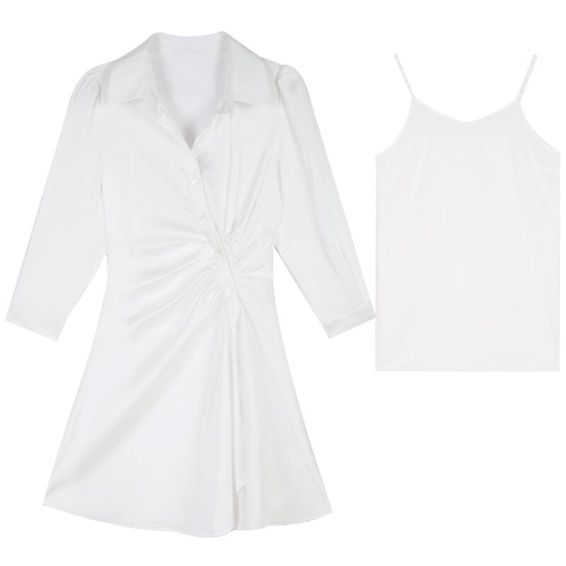 フランスのニッチなデザインセンス、ウエストは細く、気質の女神ファン優しい風シャツドレス女性ツーピーススーツ夏 サマー 夏物 yingd66832020764