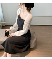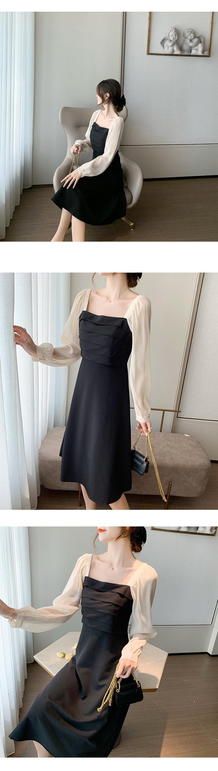 2021年秋新しいフレンチスタイルのニッチな膝上ロングスカートウエストは薄くなったハイエンド長袖ステッチドレスの女性 オータム 秋物 yingd39577825667