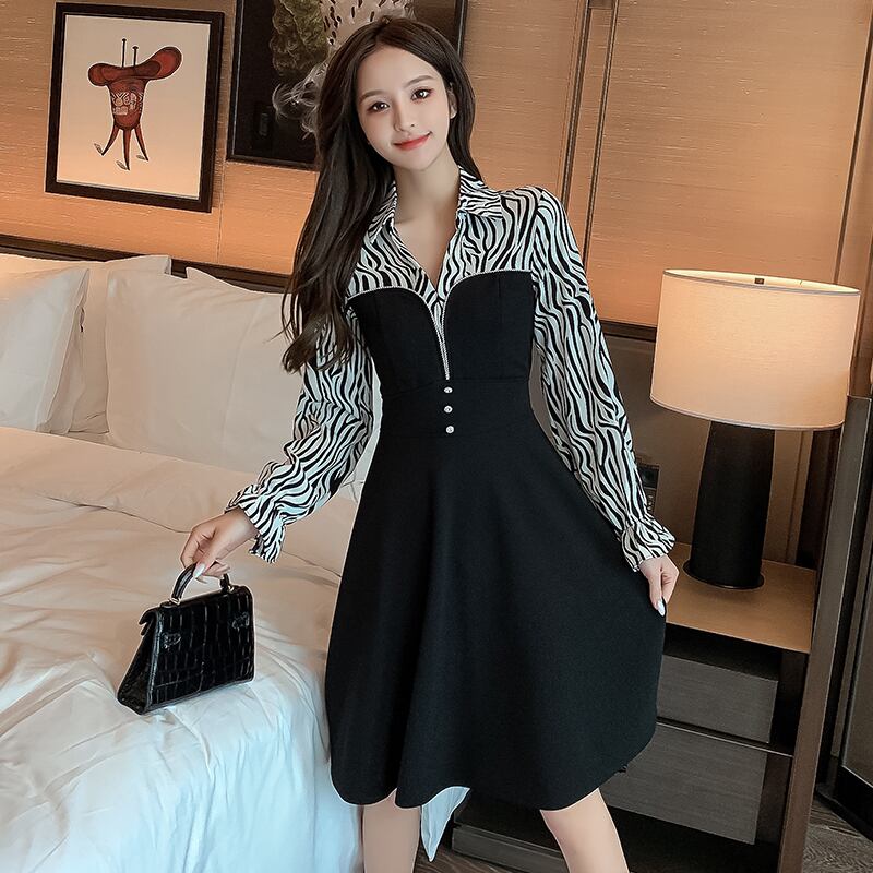 フランスのレトロな軽い豪華なデザインのスカート、軽い成熟した風、ウエスト、薄い気質の偽のツーピースドレス女性の秋と冬 オータム 秋物 ウィンター 冬物 yingd51013293820