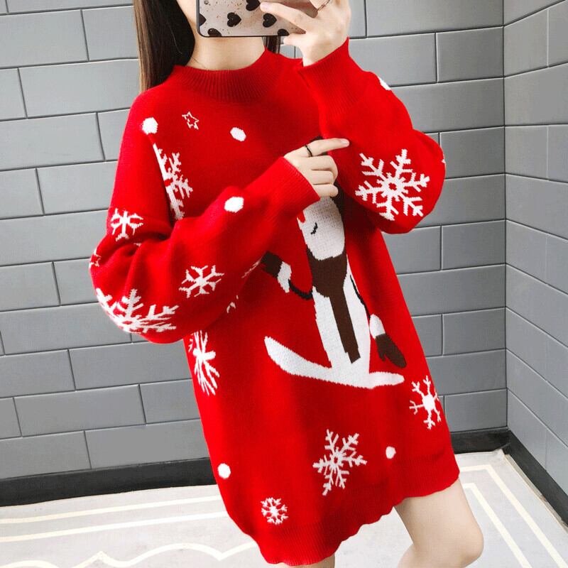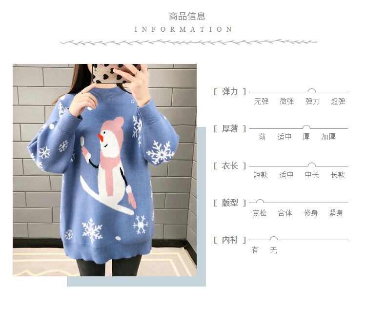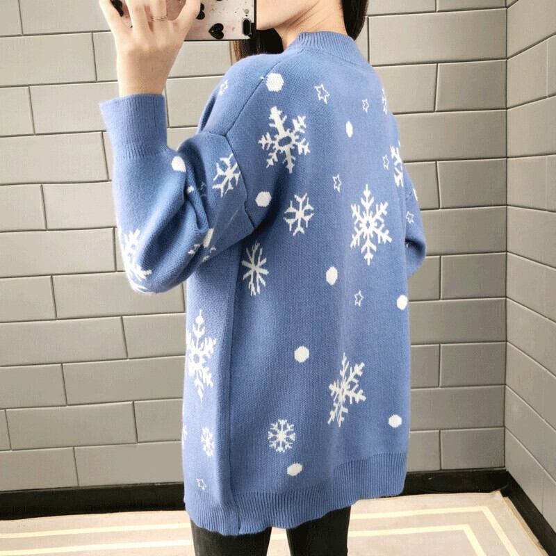 スノーフレーククリスマスセーターレディース秋冬ウェア2019新しいルーズレイジーウィンドミドルレングスプルオーバーエインスタイルセーター オータム 秋物 ウィンター 冬物 yingd19266547664