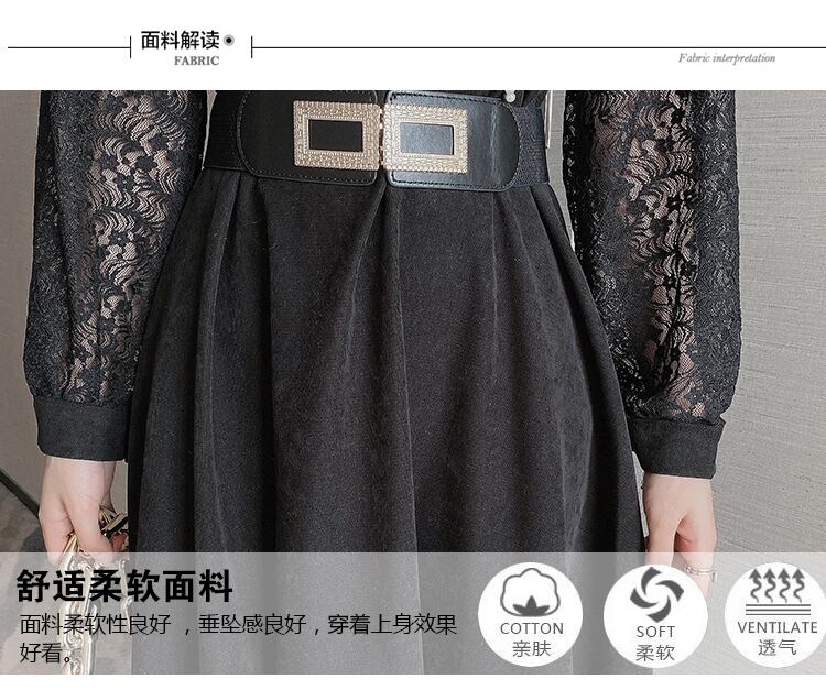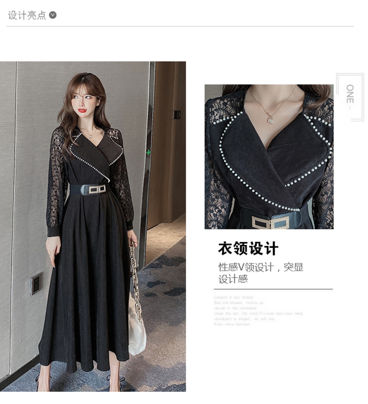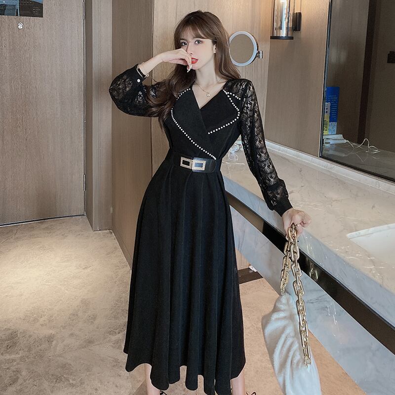 フランスのレトロなロングスカートは薄くて気質の高い女神ファン青州風縫いレース長袖ドレス秋冬女性 オータム 秋物 ウィンター 冬物 ステッチ yingd34362563583