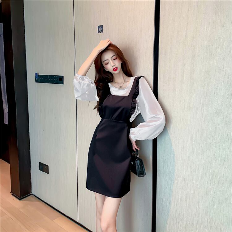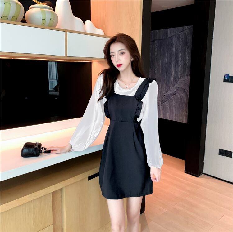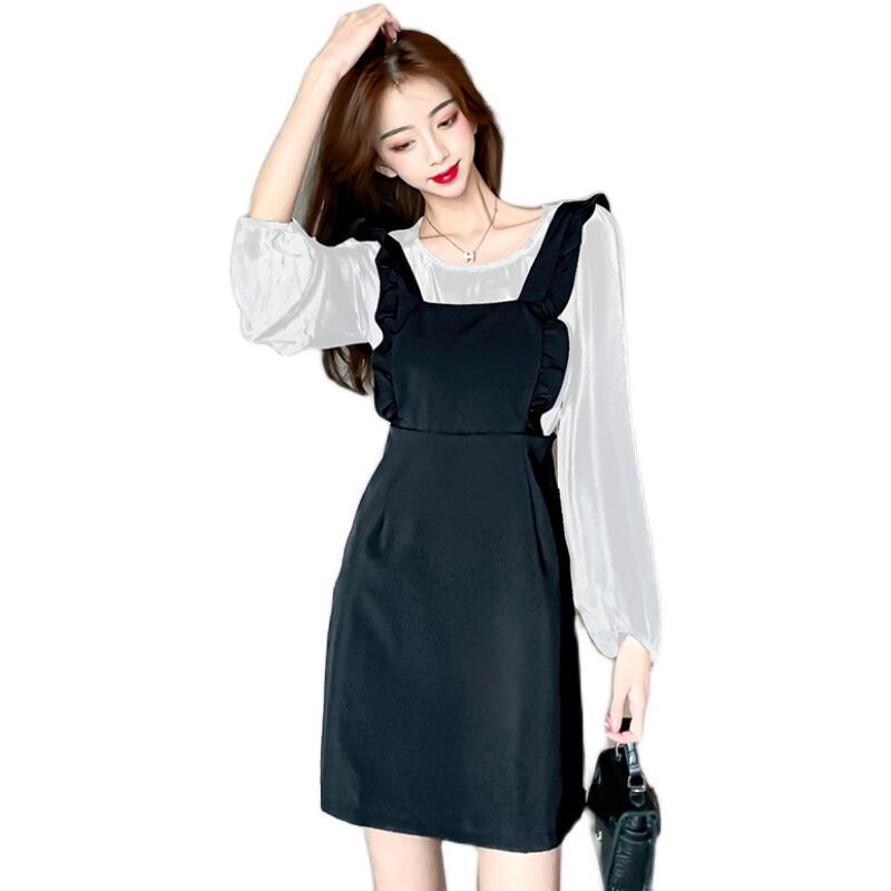 ウエスタンスタイルの年齢削減サスペンダースカートスーツ女性の2020年春秋新作スリムシャツサスペンダードレスツーピーススーツ スプリング 春物 オータム 秋物 yingd54715390350