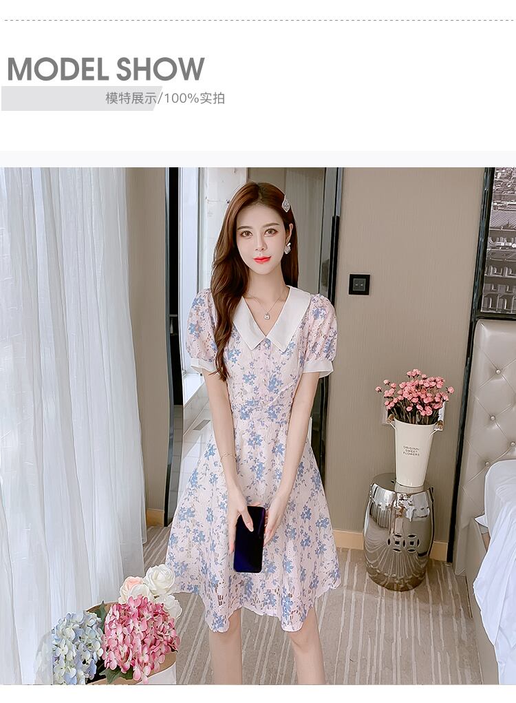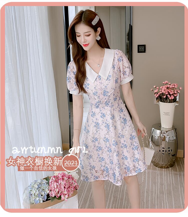 フランスのレトロなベルフラワーティーブレイクドレス穏やかな風は塩になることができます甘い小さなパフスリーブシフォン花柄のドレスの女性 大人ガーリー スウィート キュート カジュアル フラワーデザイン yingd28804324740