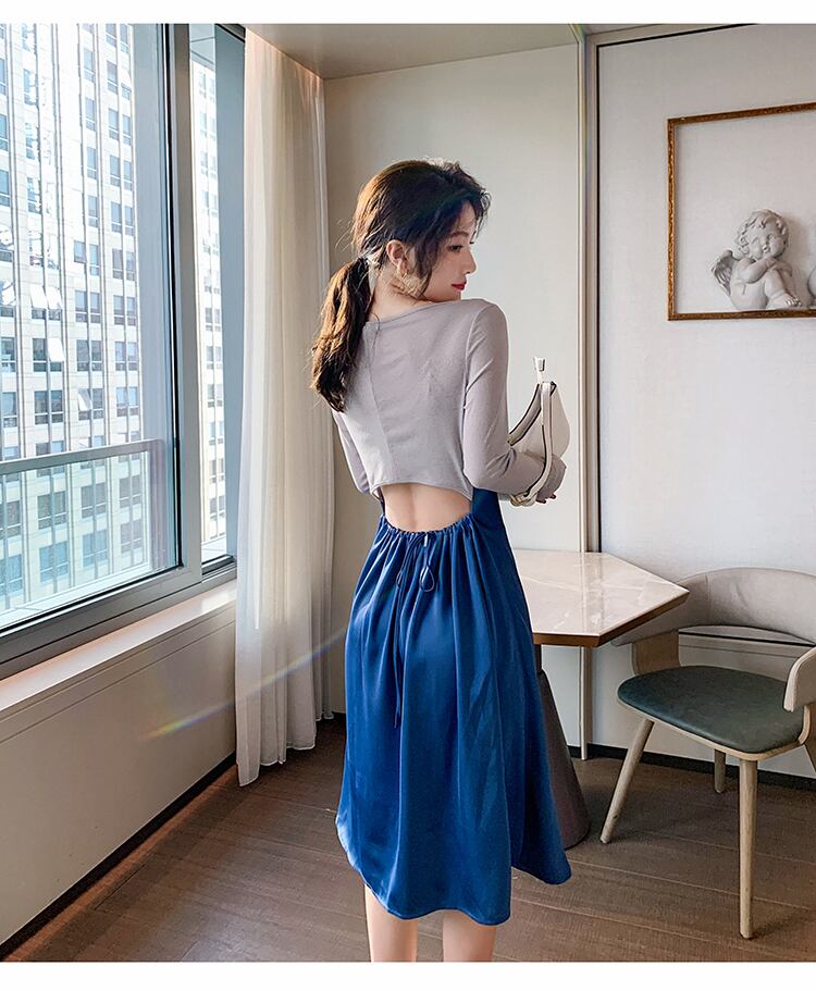 フランスのレトロなロングスカートは薄く、気質が高く、セクシーなウエストレス、冷たい風、女性の高級ドレス、女性の春服を示しています スプリング 春物 yingd66401474037