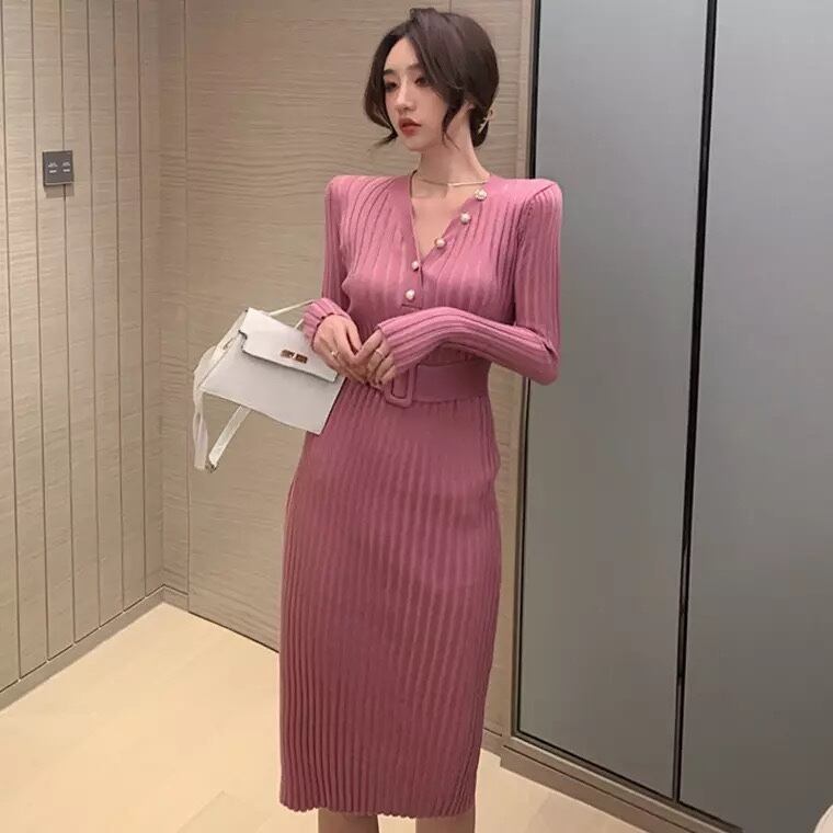 オーバーコートオーバーザニーセータードレス気質のロングスカートゆじえライトマチュアスタイルスリムスリミングニットドレス女性秋冬 オータム 秋物 ウィンター 冬物 yingd87194706708