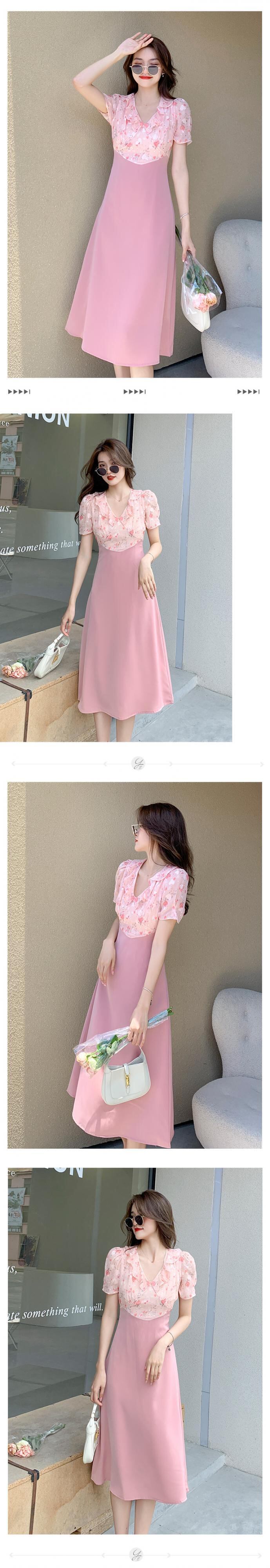 フランスのレトロな優しい風platycodonティーブレイクスカートデザインニッチウエスト薄めステッチ花柄ドレス女性夏の感覚 サマー 夏物 yingd70283571879