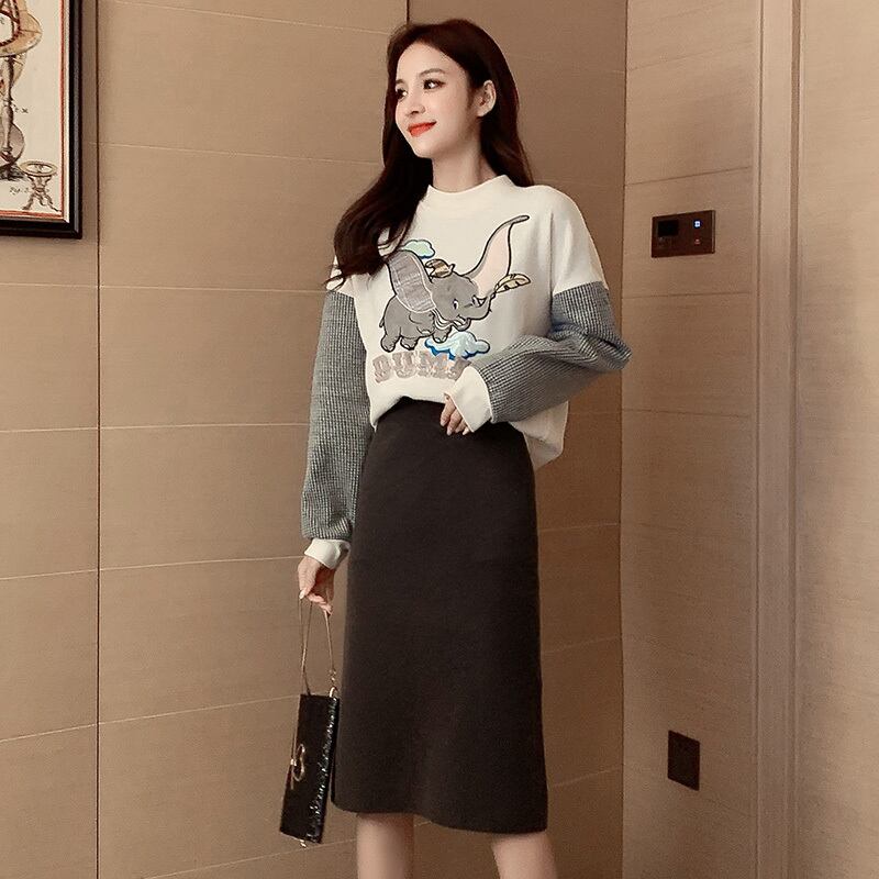痩身年齢を減らすセータースーツ2020年の新しい女性の秋と冬に加えてベルベットのセーターニットスカートツーピーススーツ オータム 秋物 ウィンター 冬物 yingd45176687918