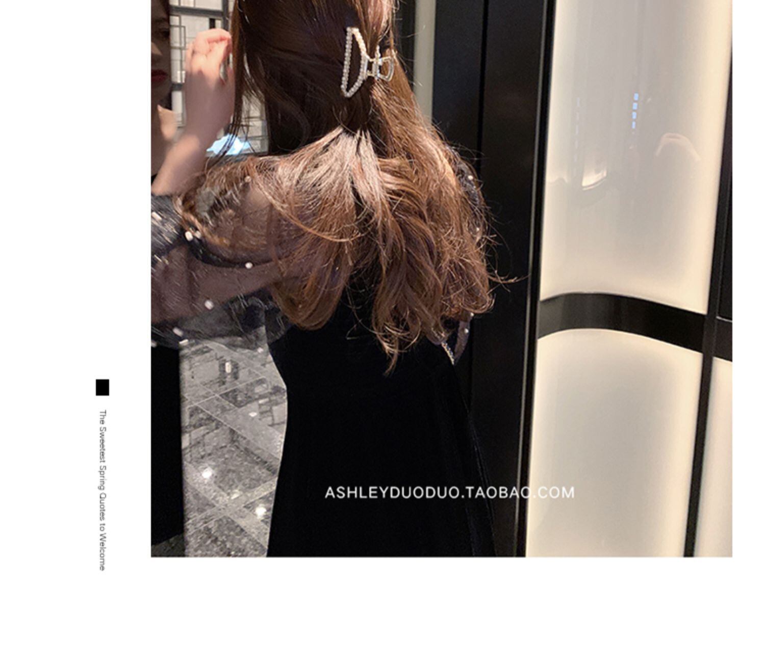 フレンチブラックドレスヘップバーンスタイルのウエストは薄くて軽い高級レディースネット糸ステッチベルベットドレス女性秋冬 オータム 秋物 ウィンター 冬物 yingd95715498206