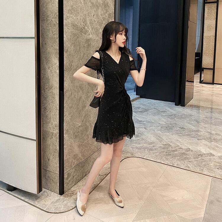 スカート女性2020年夏新しいフレンチレトロヘップバーンスタイルリトルブラックドレス気質Vネックウエストスリミングドレス女性 サマー 夏物 yingd35702223210