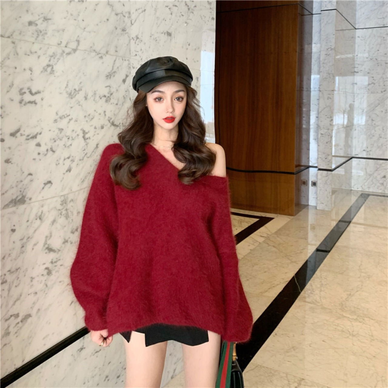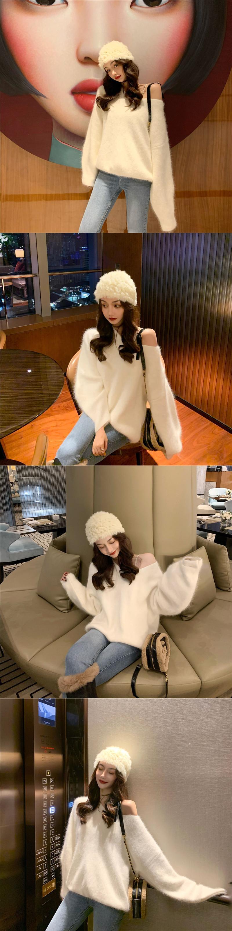 2020年秋新作ミンクベルベットセーター女性秋冬アウターウェアルーズストラップレス長袖プルオーバーセータートップ女性 ロング ウィンター 冬物 yingd86406666501