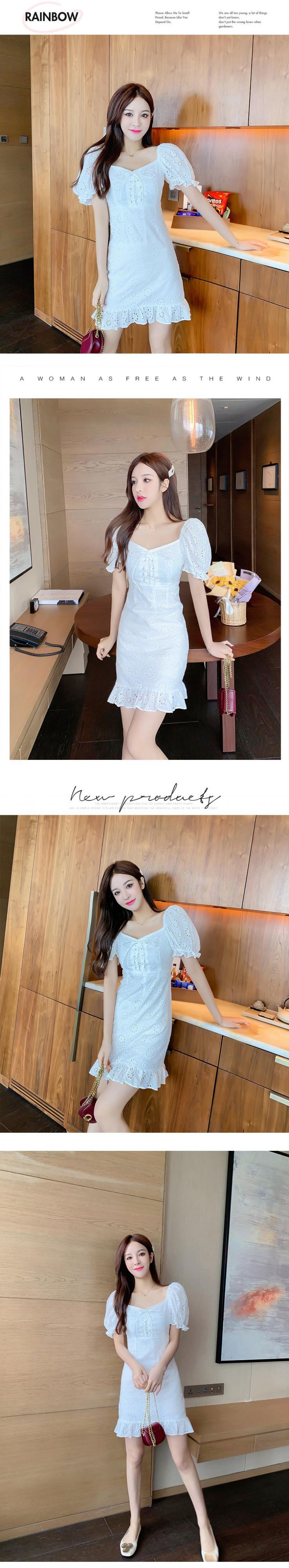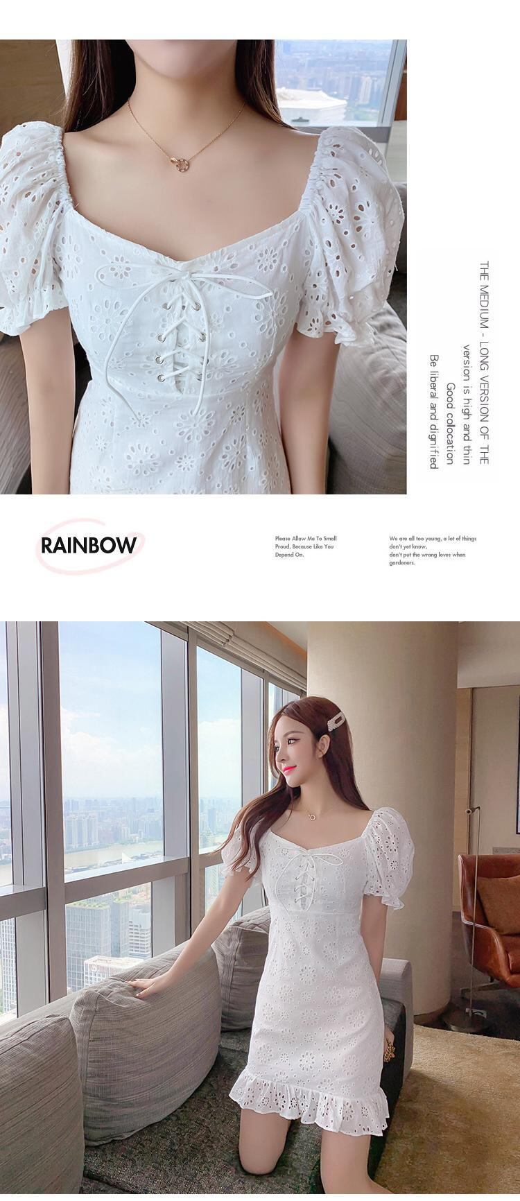 フランスのニッチな甘い初恋の妖精のスカートのウエストは薄く、気質の優しい風の泡の袖の白いドレス女性の夏 ホワイト 大人ガーリー スウィート キュート カジュアル サマー 夏物 yingd36418636341