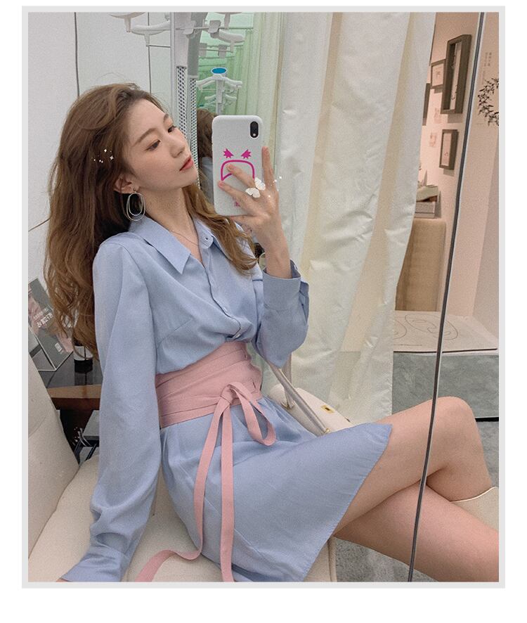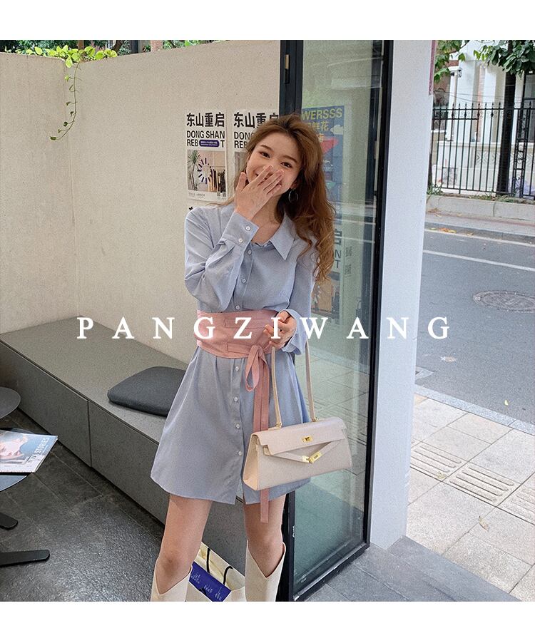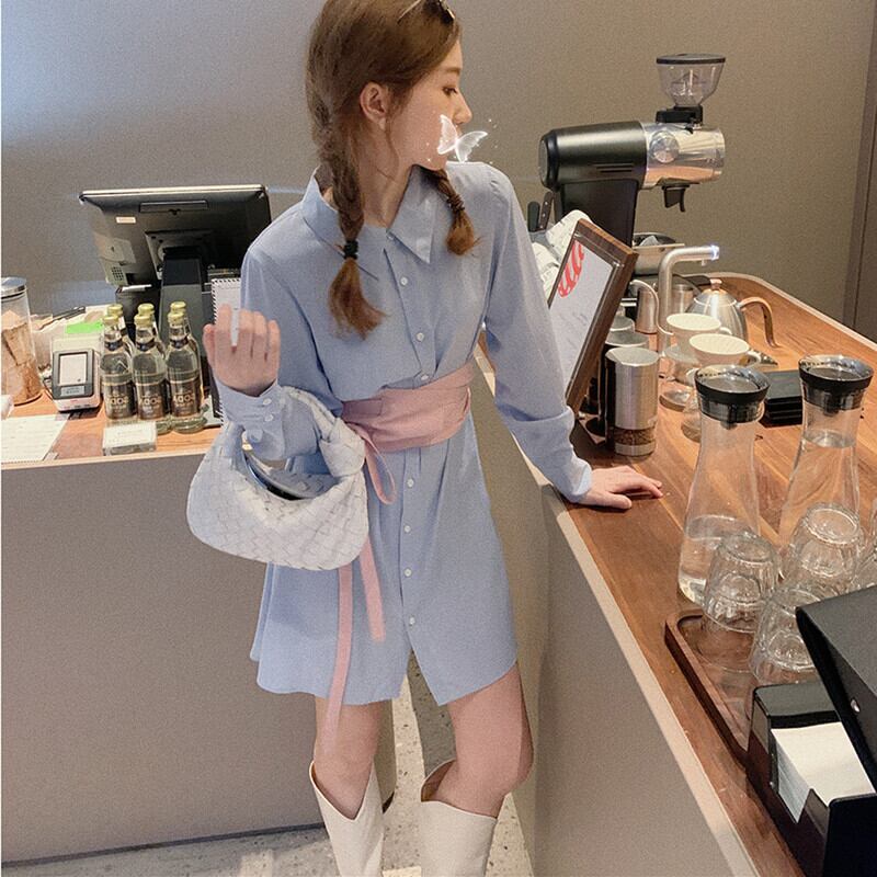 2021年初春新作レディースフレンチレトロデザインセンスニッチシャツスカートウエストスリムシャツドレス女性 スプリング 春物 yingd34177393150