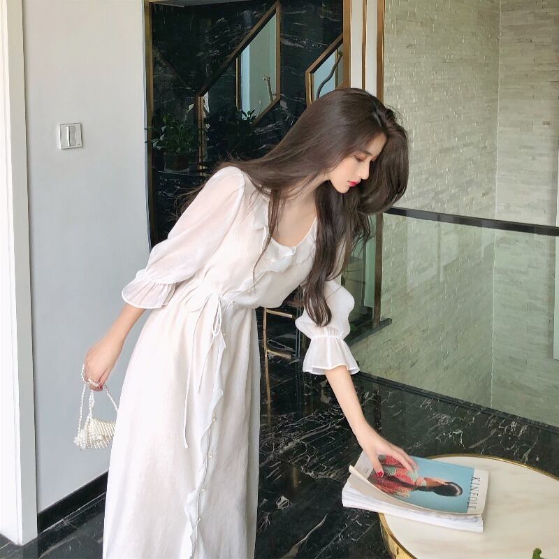 スカート2021新しい夏フランスのレトロなニッチウエストウエストは薄い気質の優しい風シャツドレス女性でした サマー 夏物 yingd78180212694
