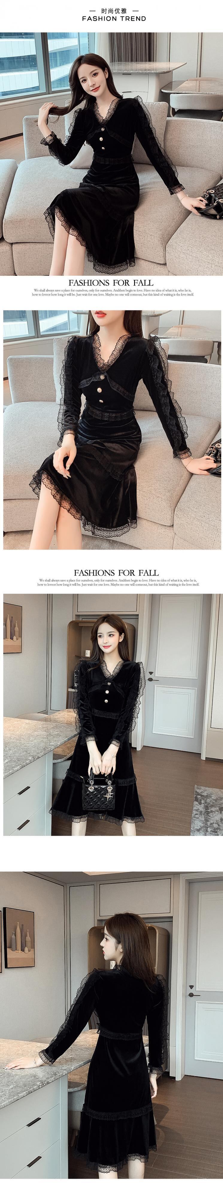 フレンチレトロヘップバーンスタイルリトルブラックドレス気質ライトラグジュアリーセレブリティミドル丈バッグヒップベルベットドレス女性秋冬 オータム 秋物 ウィンター 冬物 yingd49521280625