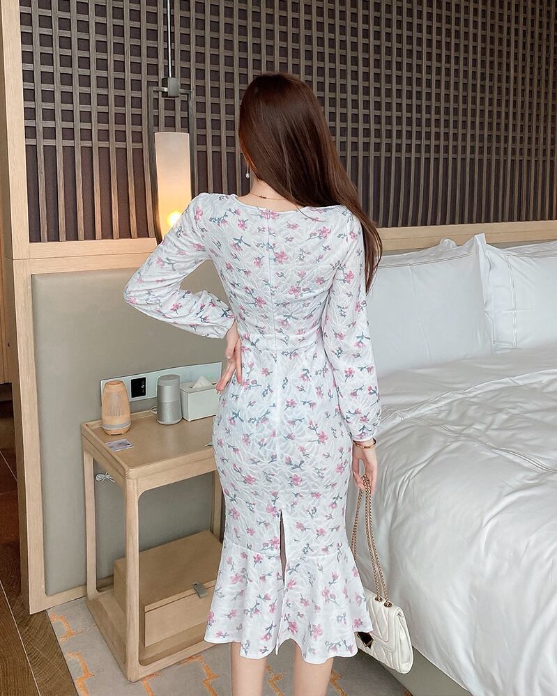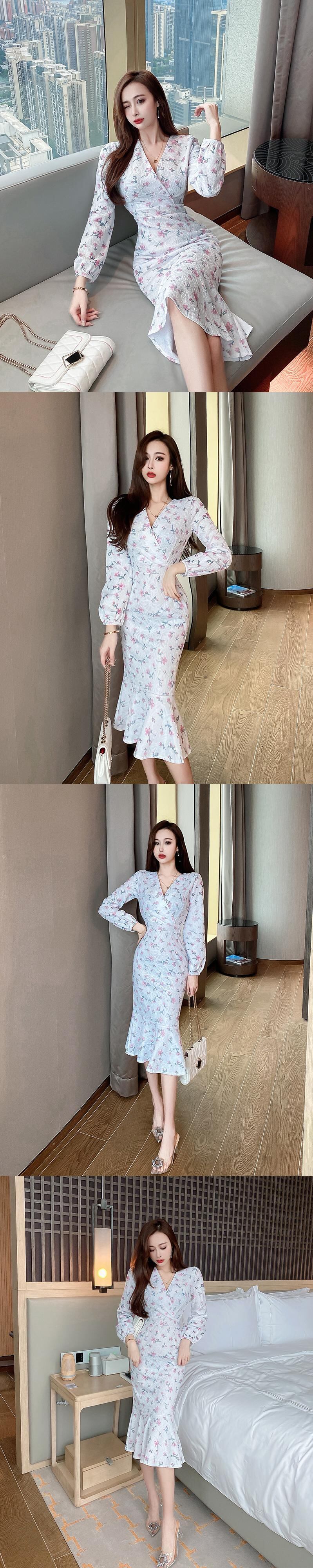 フランスのレトロな気質フェミニンなセクシーなVネックウエストスリミングタイトフィットヒップフィッシュテールドレス女性の秋と冬 オータム 秋物 ウィンター 冬物 yingd45503097532