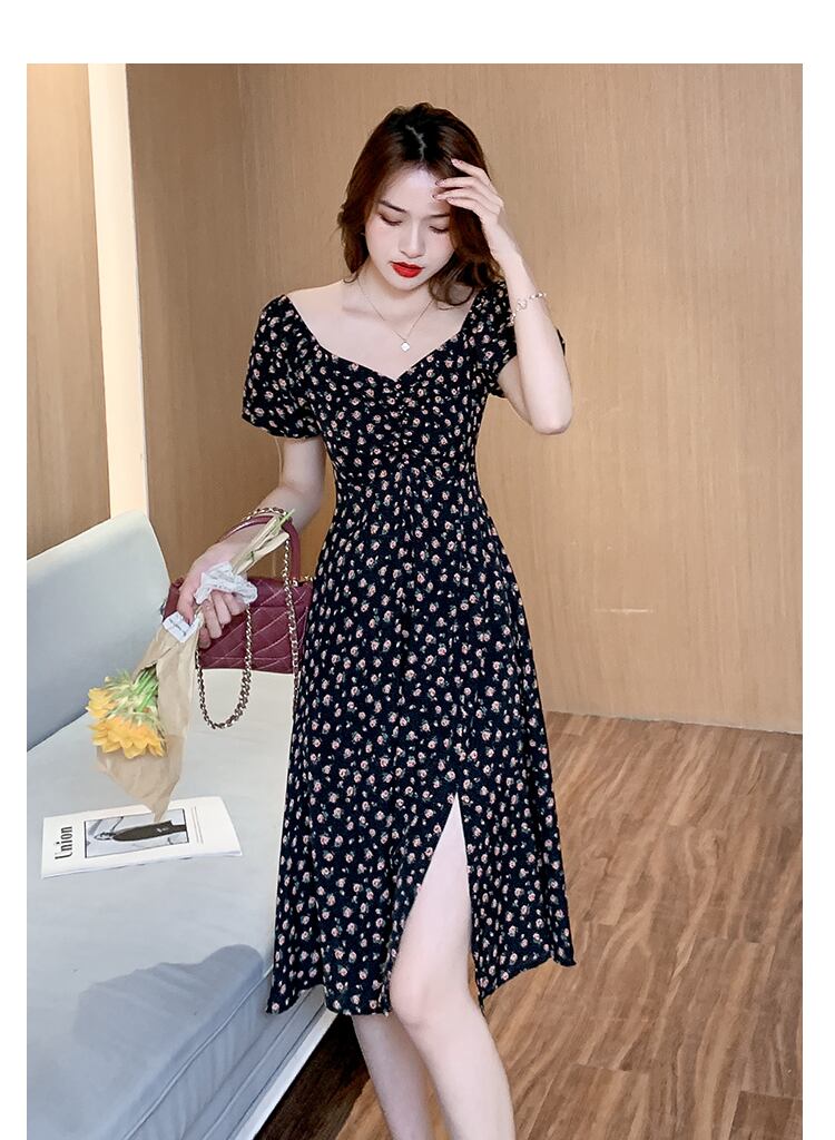 フランスのレトロな優しい風のキキョウのティーブレイクドレスのウエストは細く、女性のハイセンスフローラルドレスの女性の夏 サマー 夏物 花柄 yingd66229759280