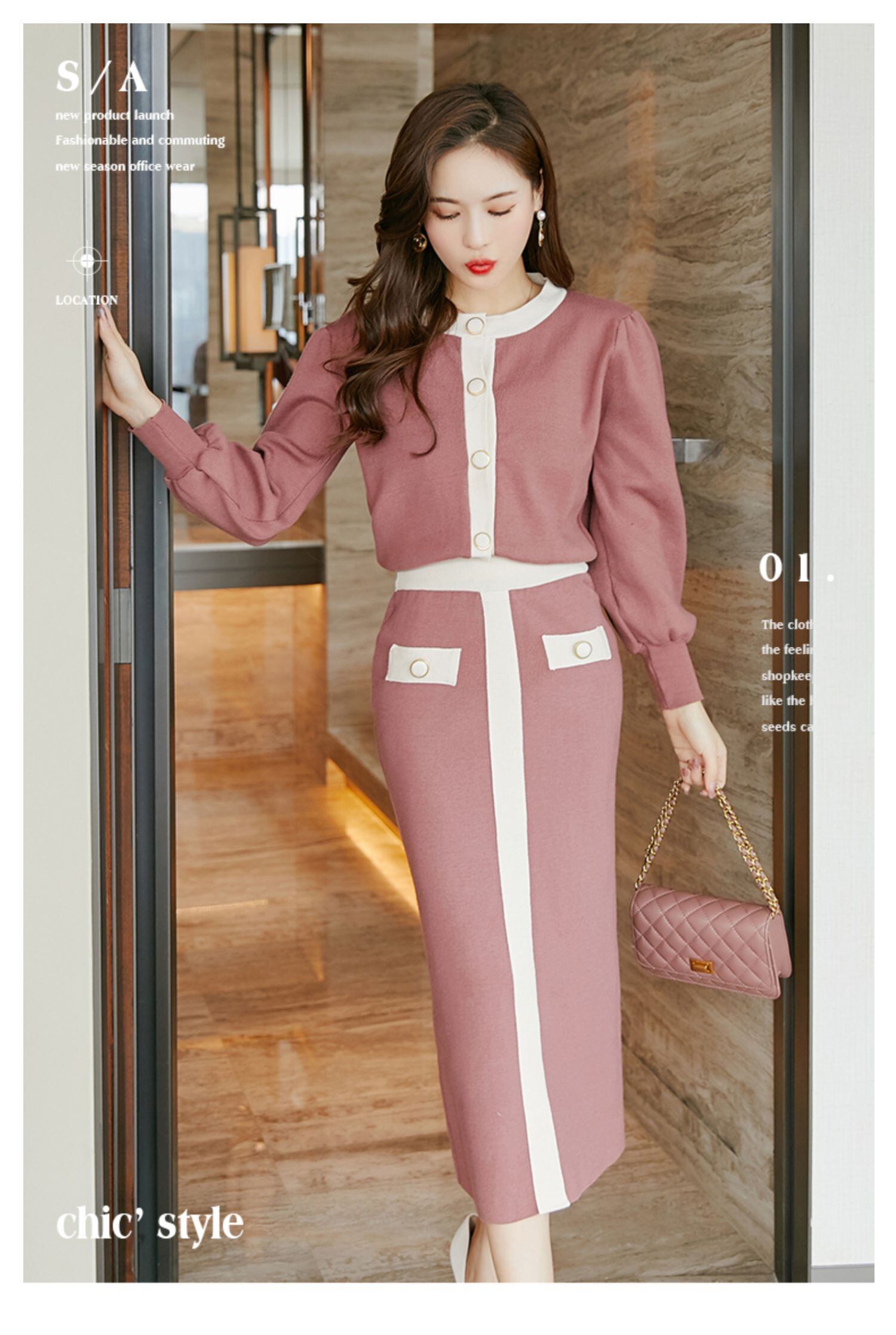 秋冬セータースーツスカート女性2020新気質女性女神ファンニットカーディガンスカートツーピース オータム 秋物 ウィンター 冬物 yingd17594871061