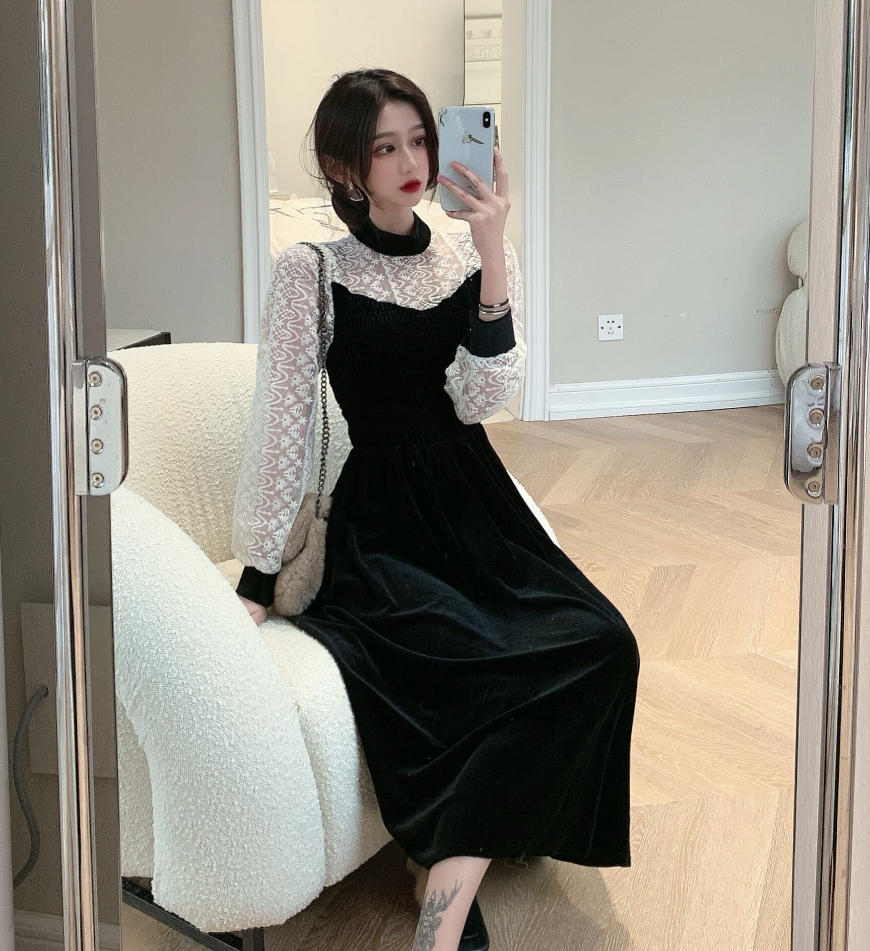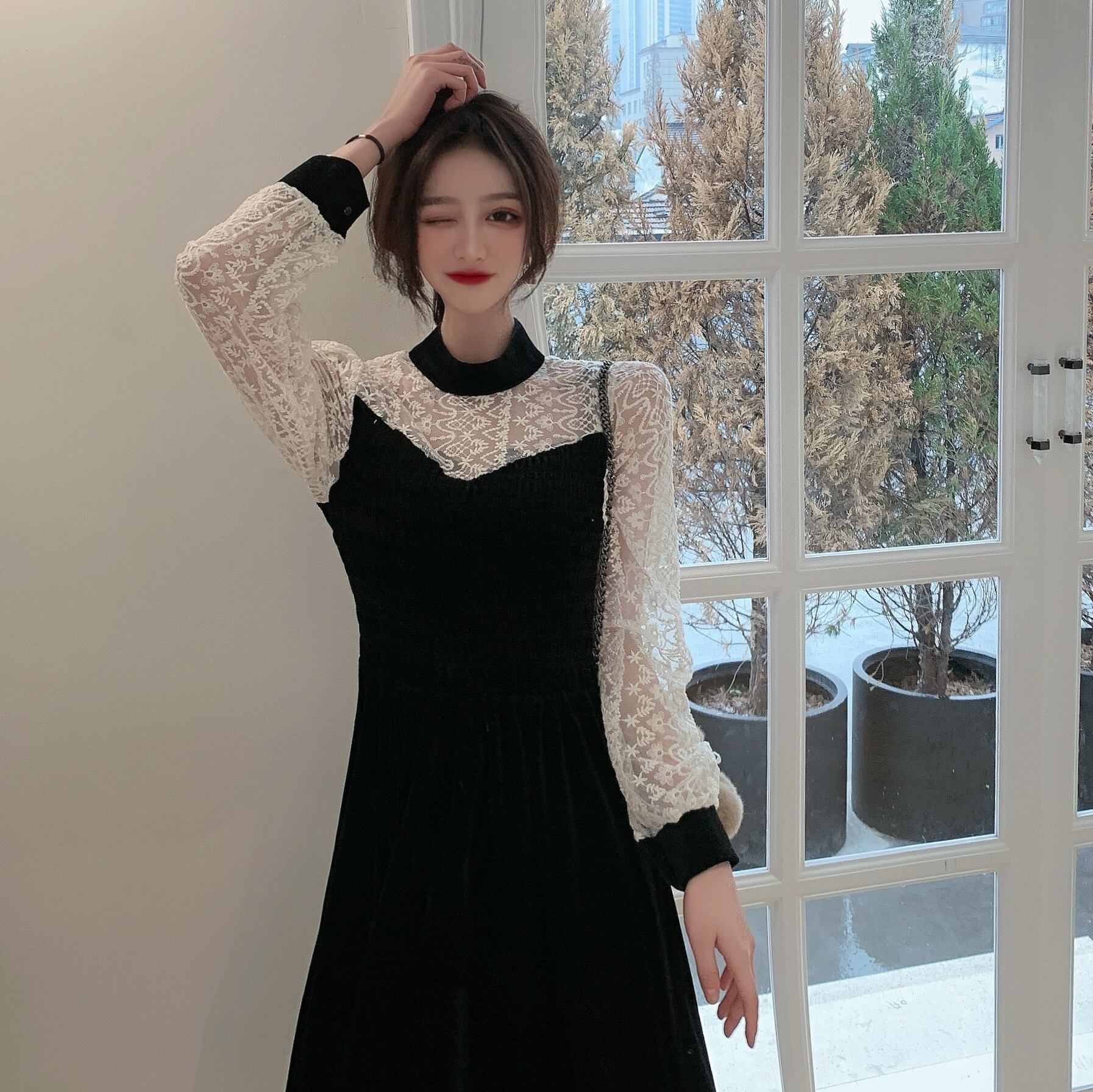 コート付きの冬のスカート、冬のスカート、長いスカートは薄く、気性が高く、軽い贅沢、女性のベルベットのドレス、秋/冬の女性 ロング ウィンター 冬物 yingd31135158058