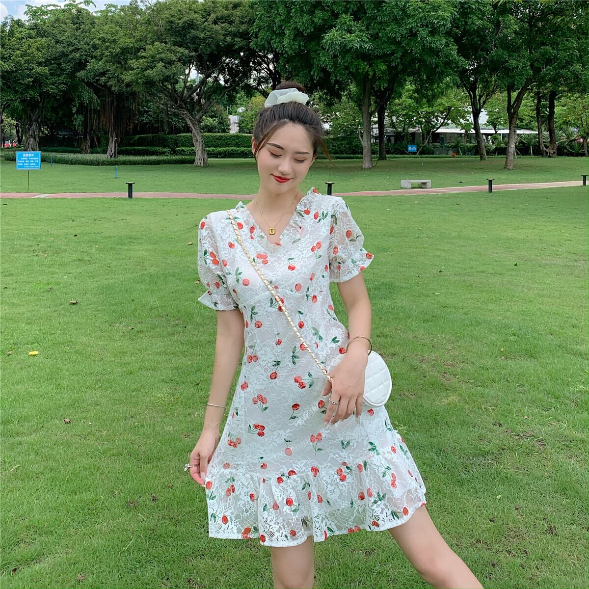 フランスのニッチ初恋フェアリースカートシックな優しい風気質女神ファンレースドレス女性の夏のウエストは薄かった サマー 夏物 yingd55314014484