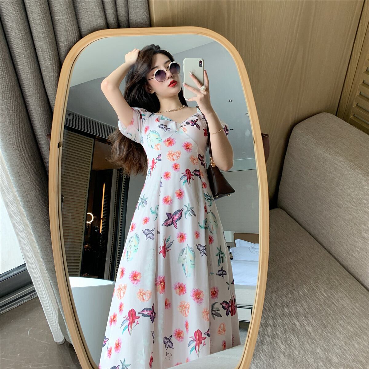 フランスのレトロなヘップバーンスタイルのロングスカートは薄くて気質が高く、穏やかな風が塩になり、甘い花柄のドレスになります女性の夏 大人ガーリー スウィート キュート カジュアル サマー 夏物 yingd60708242851