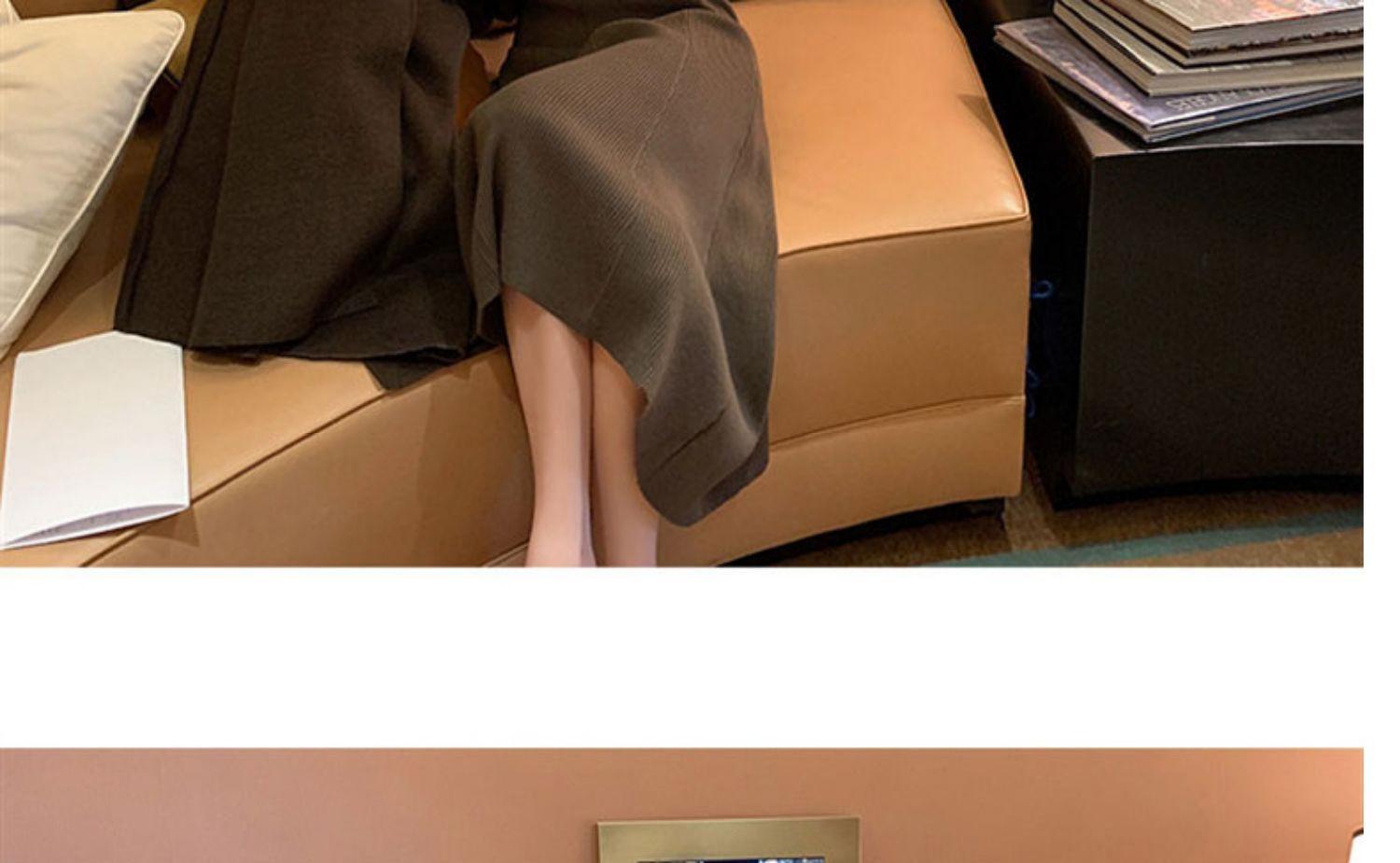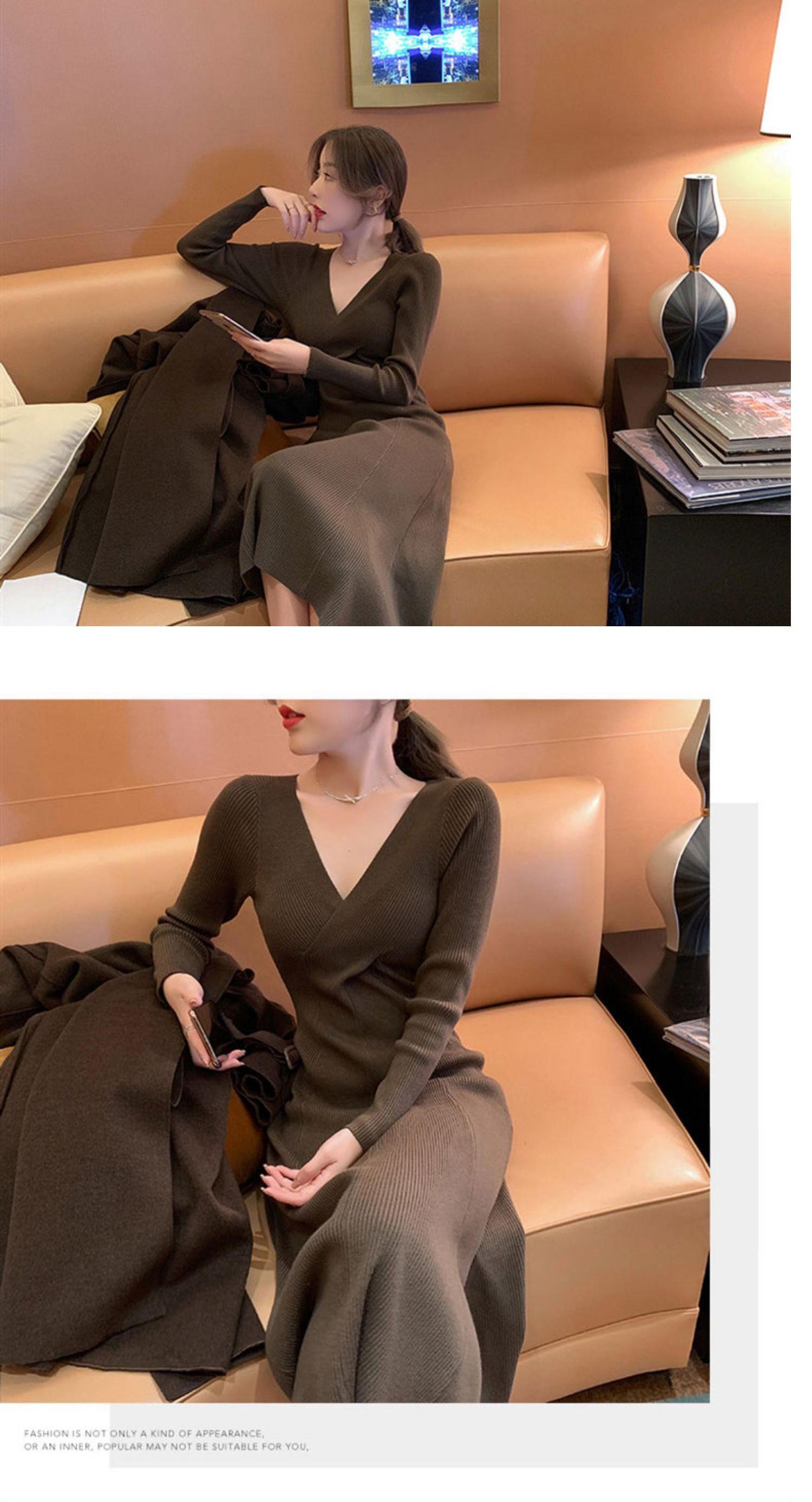 コートと膝の内側の長いセータースカート、ウエストは薄く、Vネックニットボトミングドレス、女性の秋と冬 ロング オータム 秋物 ウィンター 冬物 yingd77471530992