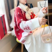 イミテーションミンクベルベットスノーフレーククリスマス赤いセーター女性冬厚いレトロなese怠惰なスタイルのプルオーバーボトミングシャツ秋と冬 レッド オータム 秋物 ウィンター 冬物 yingd62392689001