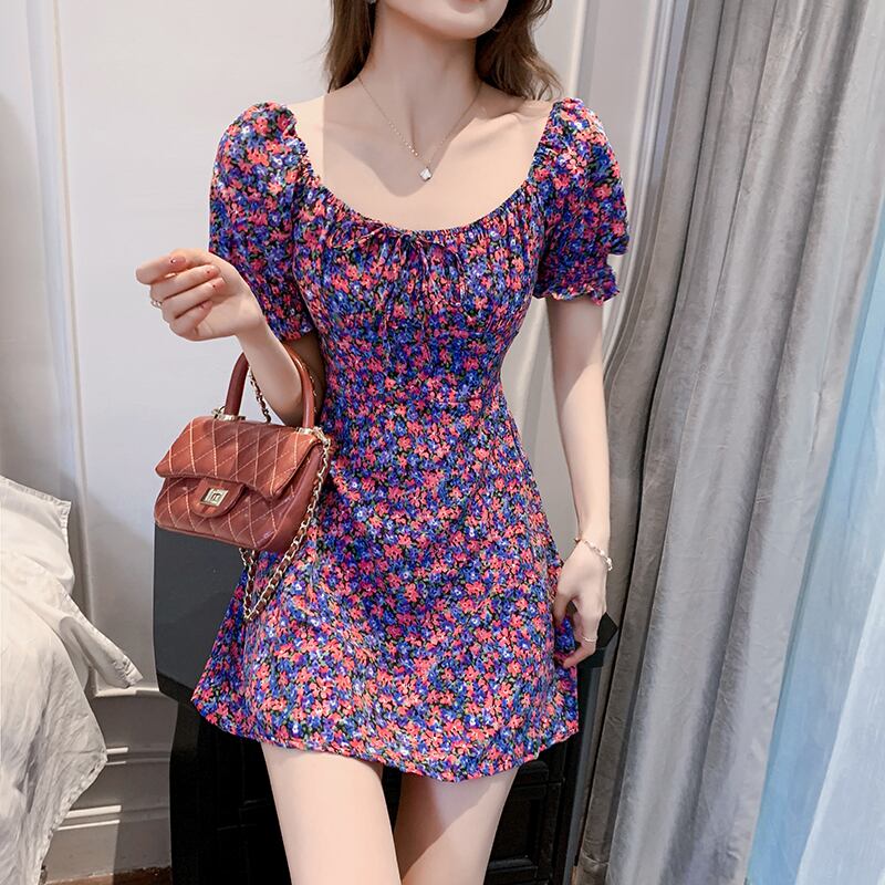 フランスのレトロなベルフラワーティーブレイクフローラルドレス穏やかな風は塩になることができます甘いスクエアネックパフスリーブフローラルドレス女性の夏 大人ガーリー スウィート キュート カジュアル サマー 夏物 花柄 フラワーデザイン スクウェア yingd60975577364