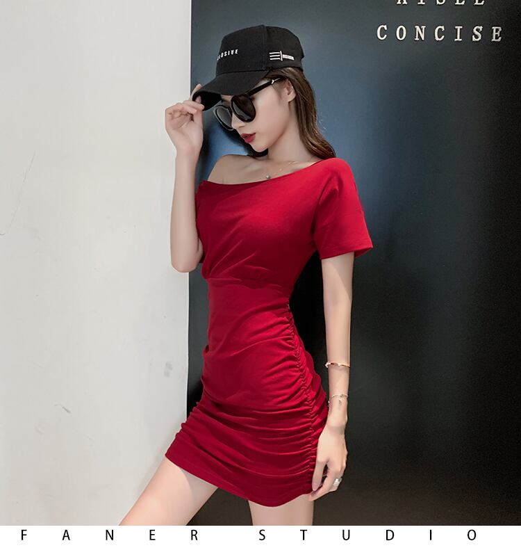 オフショルダーの慎重なマシンのセクシーなドレスの女性2020年の新しいサマードレスレトロな香港スタイルの小さなタイトフィットヒップスカート 夏物 yingd49280065417