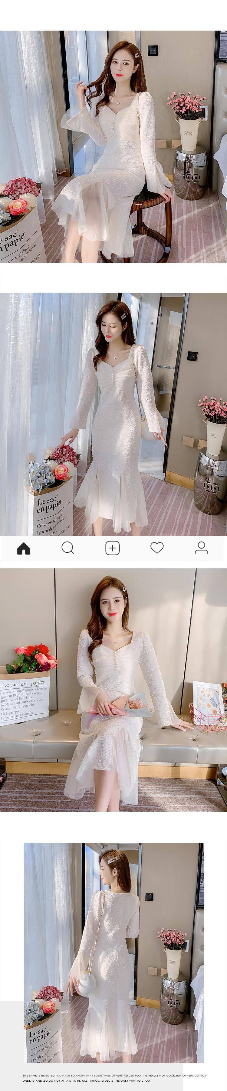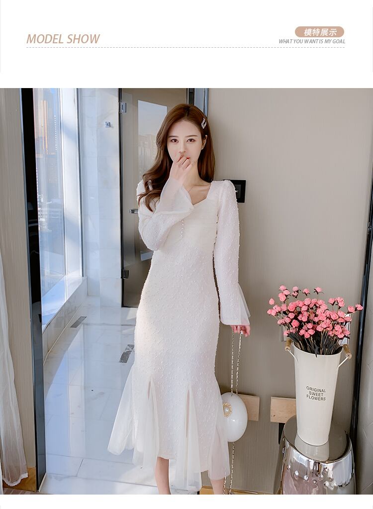 2021年春の新しい気質、軽い贅沢、女性の優しいスタイル、セクシーなスリムな痩身フィッシュテールドレス女性のロングスカート スプリング 春物 yingd95203004038