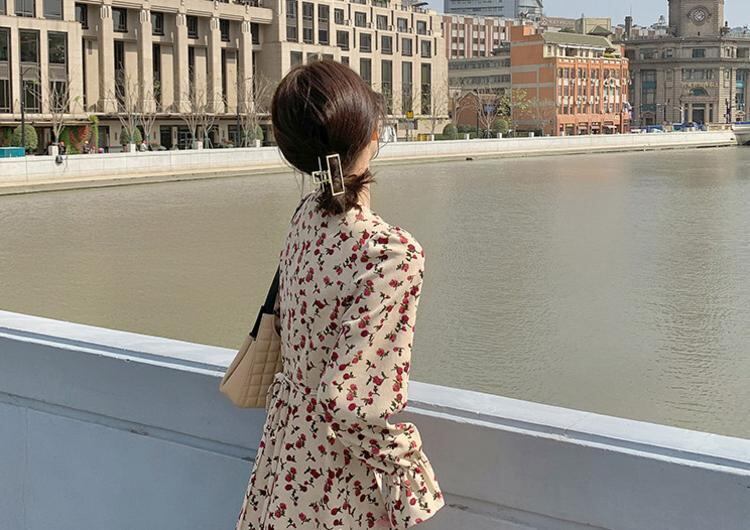 2021年初春新作レディースフレンチスタイルニッチヘップバーンスタイル高品質コールドスタイル長袖シフォンフローラルドレス ロング スプリング 春物 花柄 yingd96114917948