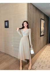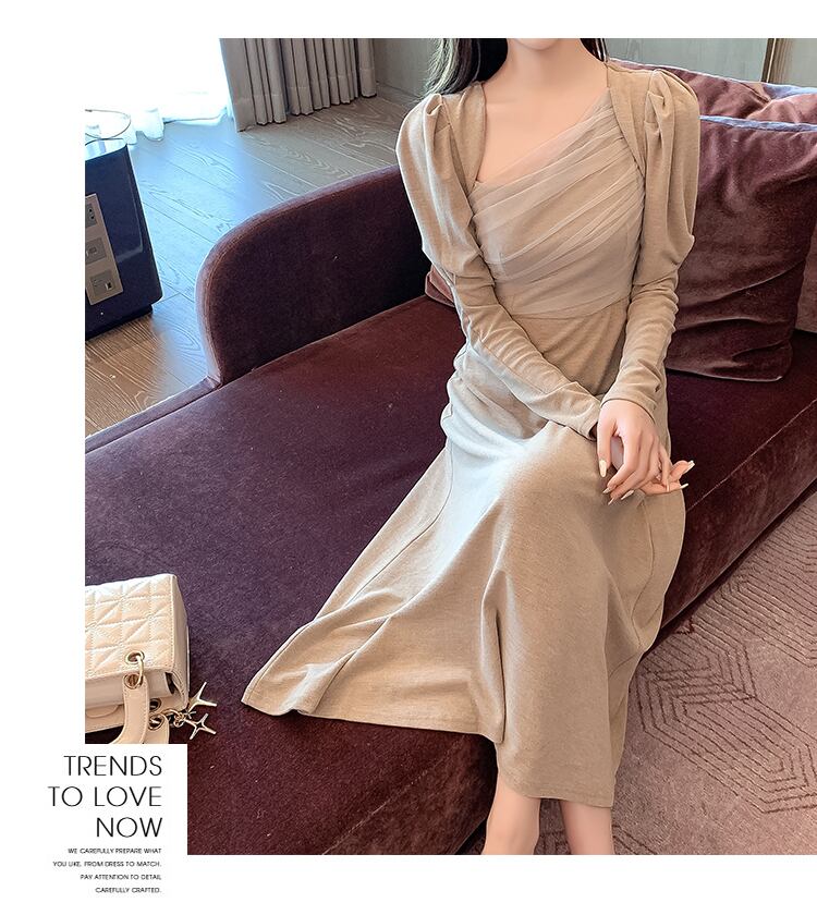 フランスのレトロなロングスカートは薄くて気質の高い女神ファン長袖メッシュステッチニットドレス秋冬女性 オータム 秋物 ウィンター 冬物 yingd95211109622