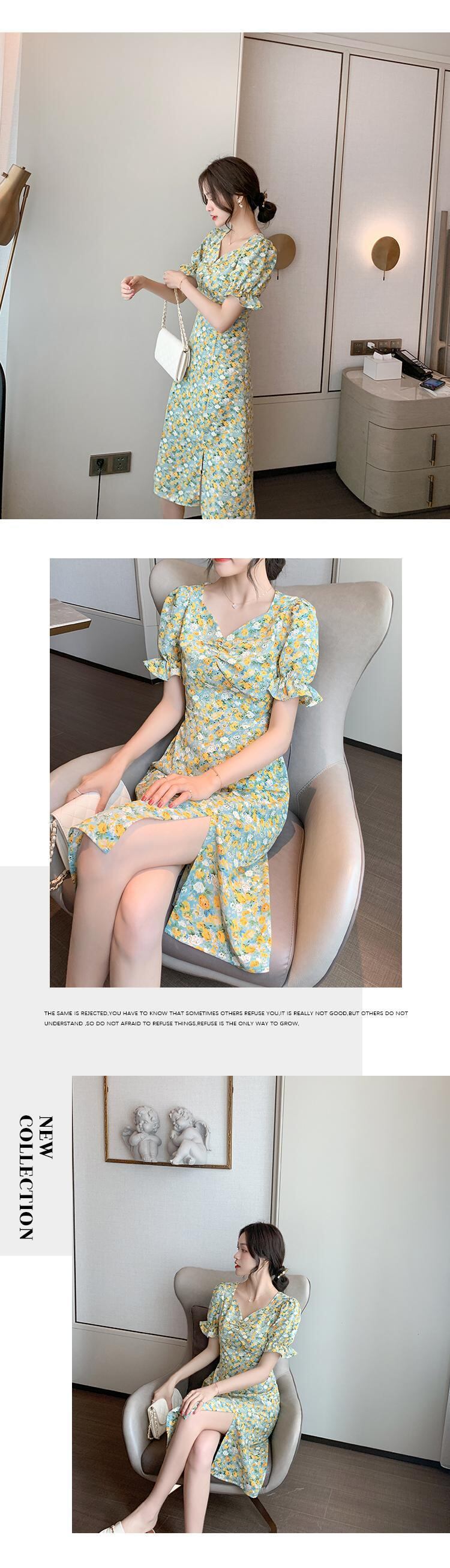 フランスのニッチなパフスリーブ花柄ドレス女性の夏のドレス2020新しい気質の女神ファンデイジー花柄のドレス サマー 夏物 yingd33284567744