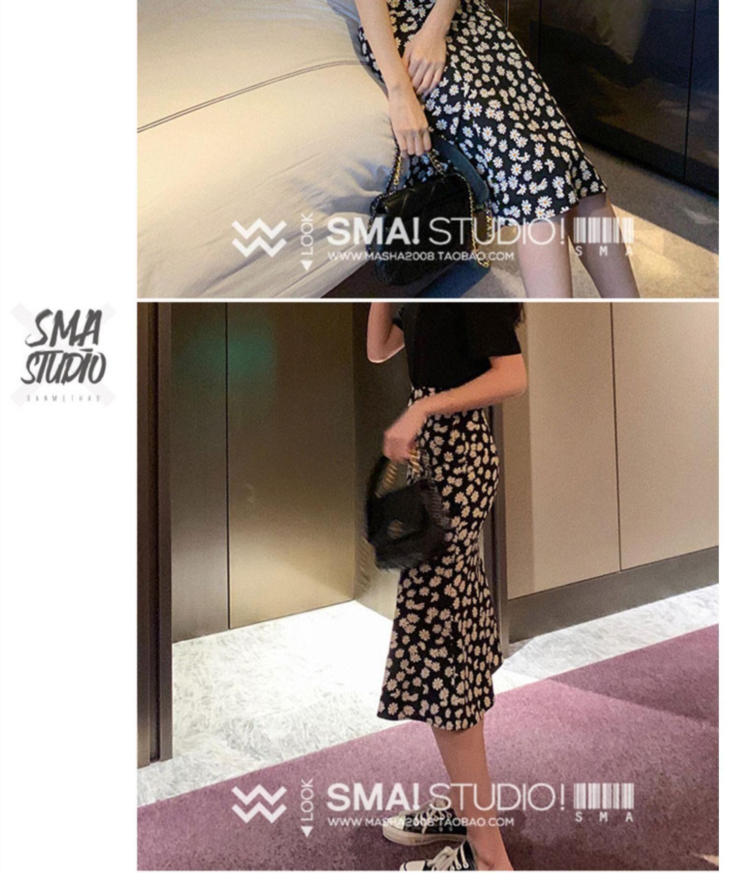 小さなデイジーフローラルスカート女性2020年夏新しいハイウエストスリムフィッシュテールバッグヒップスカートミドルレングスハーフレングススカート ハイウェスト サマー 夏物 花柄 yingd52174428433