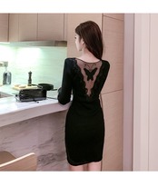 フランスのレトロなセクシーなオープンバック慎重にマシンニットドレス2020年秋新しいスリムフィットヒップセータードレス オータム 秋物 yingd64295078942