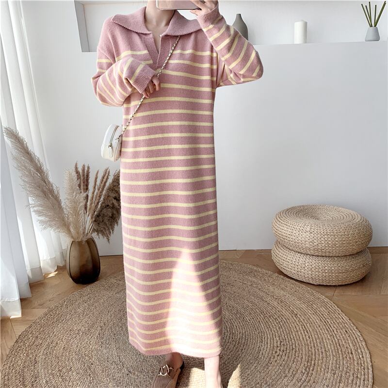 フランスのレトロなロングスカート、膝上にコート付きロングセータースカートルーズで薄いニットドレス女性の秋と冬 オータム 秋物 ウィンター 冬物 yingd39008621236