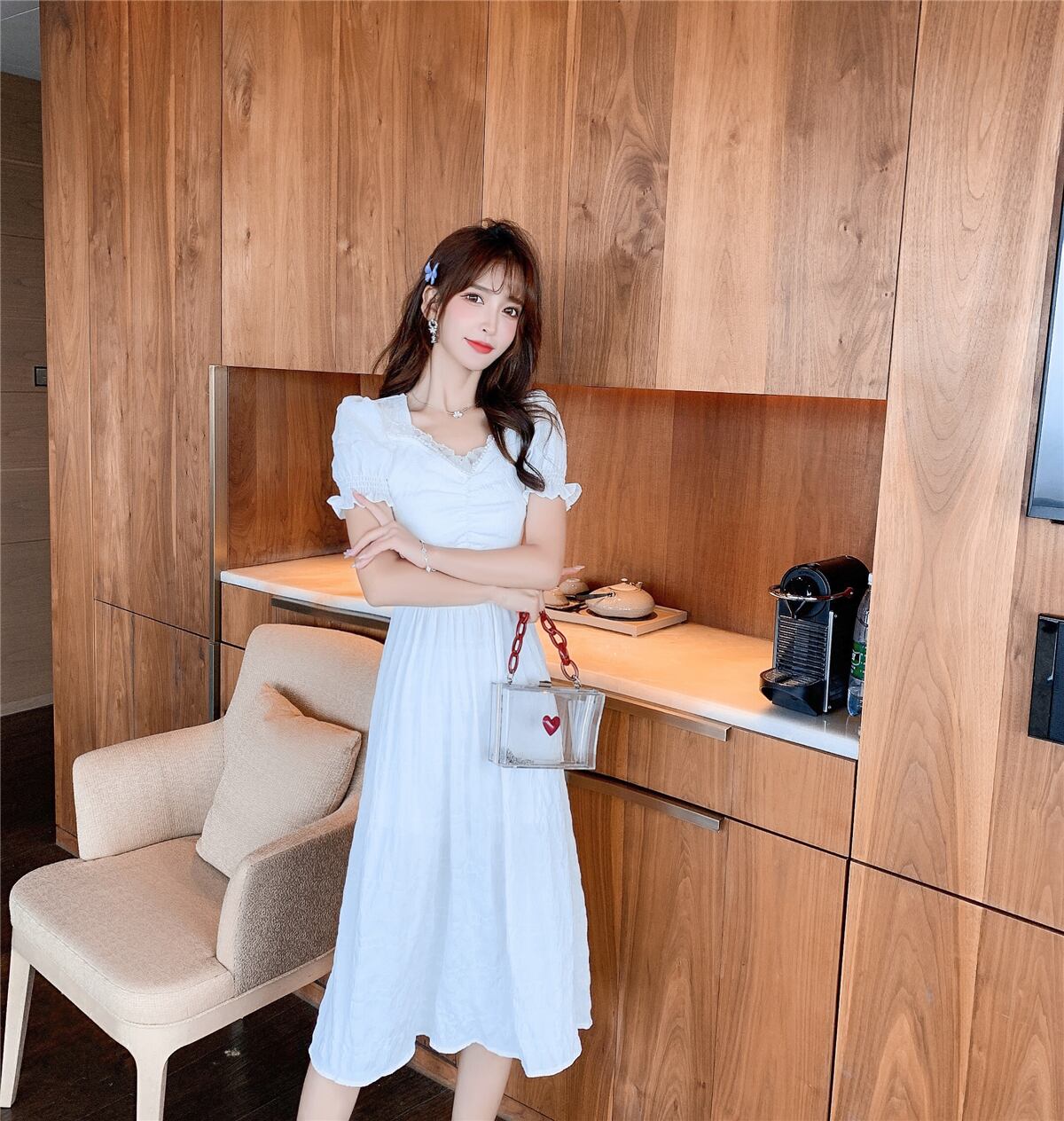 フランスのレトロなニッチキキョウスカート気質ウエストは細く、穏やかな風は甘くて塩辛いことができます、パフスリーブドレス女性の夏 大人ガーリー スウィート キュート カジュアル サマー 夏物 yingd11329215359