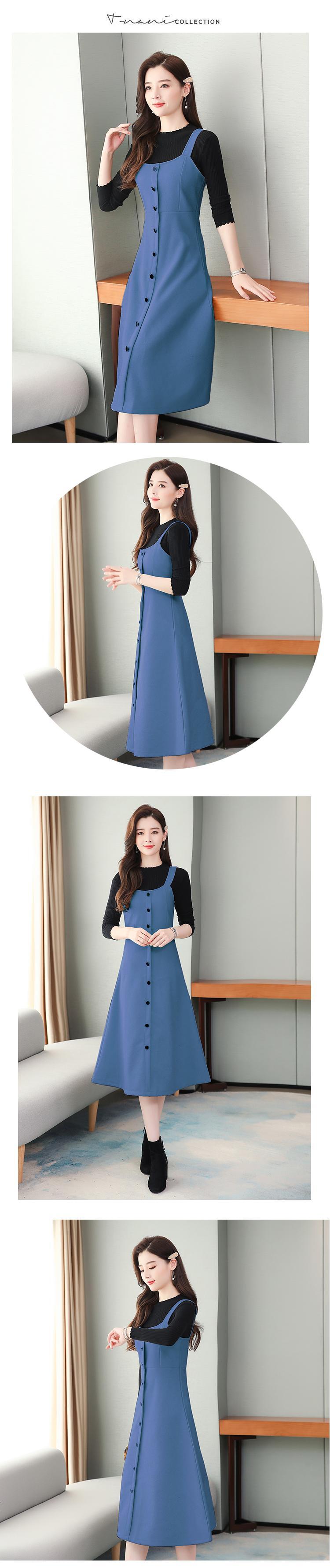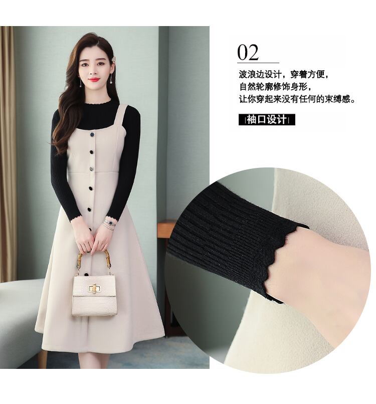 色:アプリコットドレス+黒のセーター,青いドレス+黒いセーター
