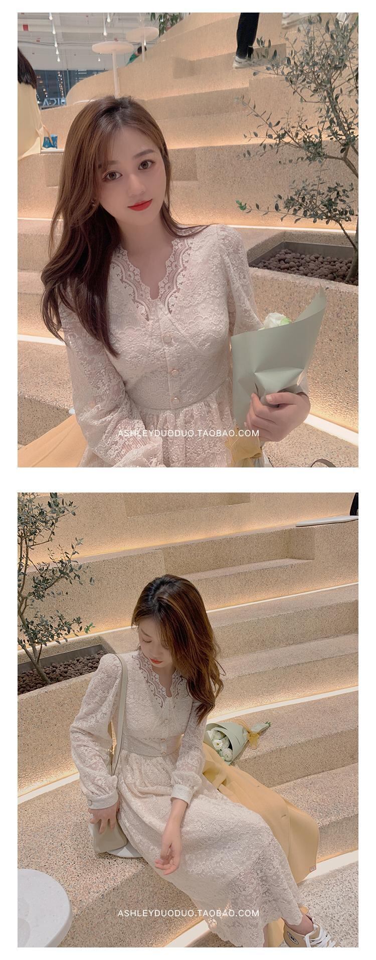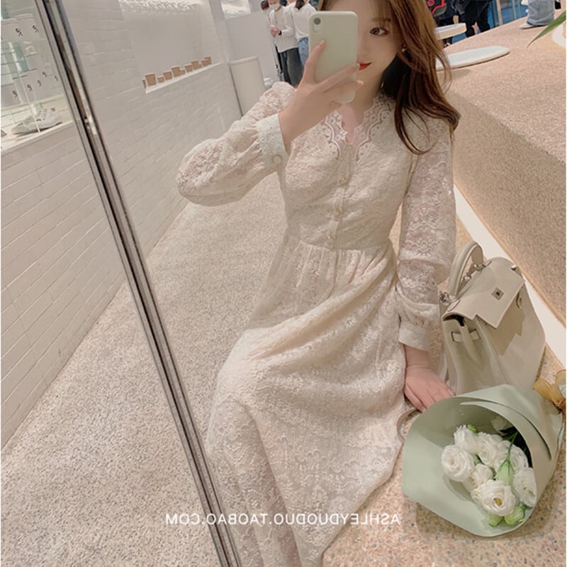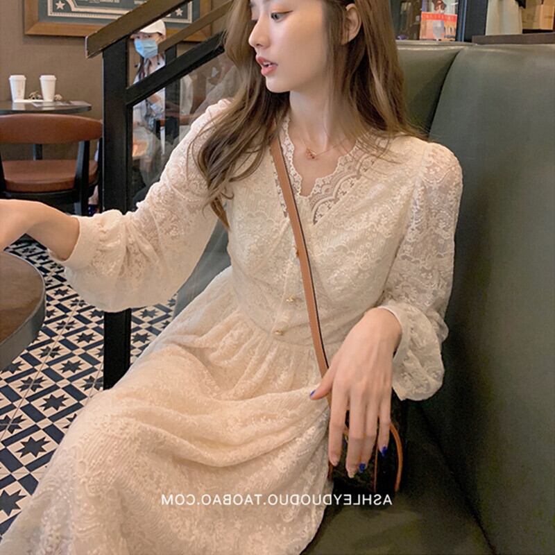 2021年春の新しいフランスの穏やかな風は塩になることができます腰を甘くすることができ、薄い気質の長袖のレースのドレスの女性 ロング 大人ガーリー スウィート キュート カジュアル スプリング 春物 yingd74039642913