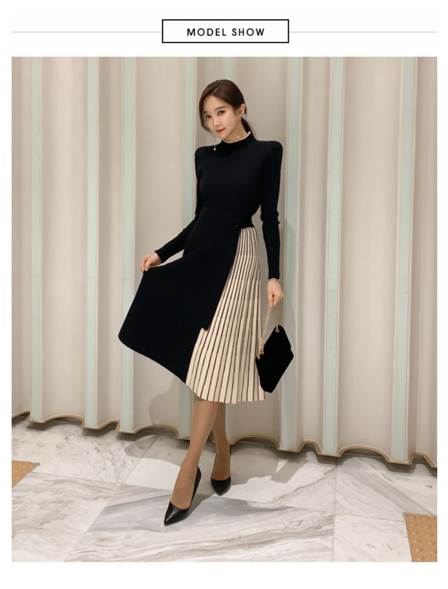 コートオーバーザニーセータースカート付きロングスカート、デザインセンス、ウエスト、薄手の気質、ベースニットワンピース、秋冬女性 オータム 秋物 ウィンター 冬物 yingd73931521576